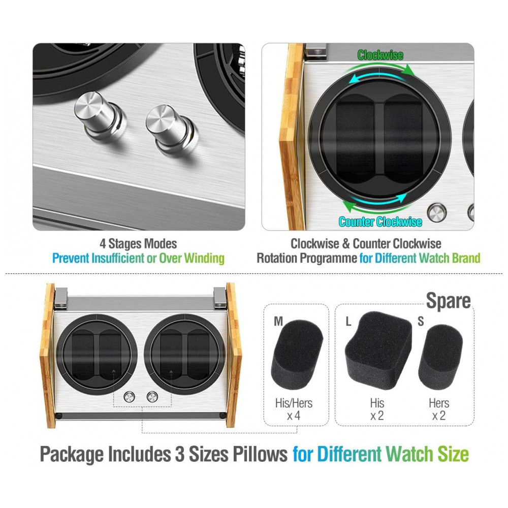 Relógio Winder Smith Manufacturing Quality Watch Winder Desde 2007 Vem com 24, 7, 2 anos após o serviço de vendas e peças Slot de copo mais amplo e profundo atualizado para relógio…
