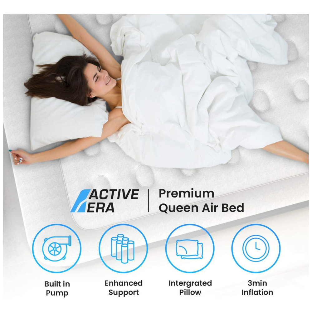 Cama Colchão Inflável Queen com Bomba Embutida, ACTIVE ERA, Cinza: INFLAÇÃO RÁPIDA Colchão de ar Queen Size com bomba elétrica fácil de usar integrada infla rapidamente a total firmeza em menos de 3 minutos.