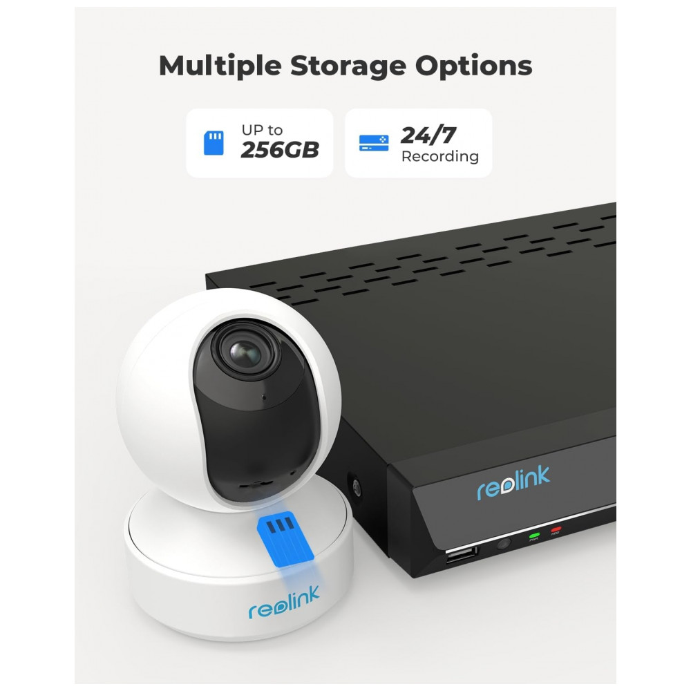 Salve clipes de movimento em um cartão micro SD até 64 GB e Reolink Cloud cartão Micro SD e NVR não estão incluídos.