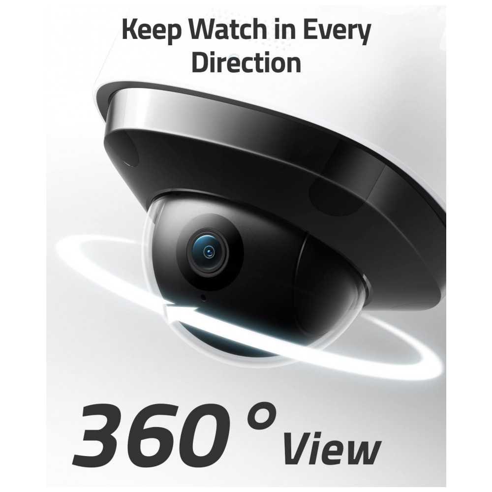 Câmera de Segurança Externa 2K Full HD com 360 com Iluminação LED e Bloqueio de Rastreio de Conversas, EUFY SECURITY T8423, Branco: Cobertura da câmera de panorâmica e inclinação de 360 Desloque a lente 360 horizontalmente para obter uma visão completa sem o risco de pontos cegos.