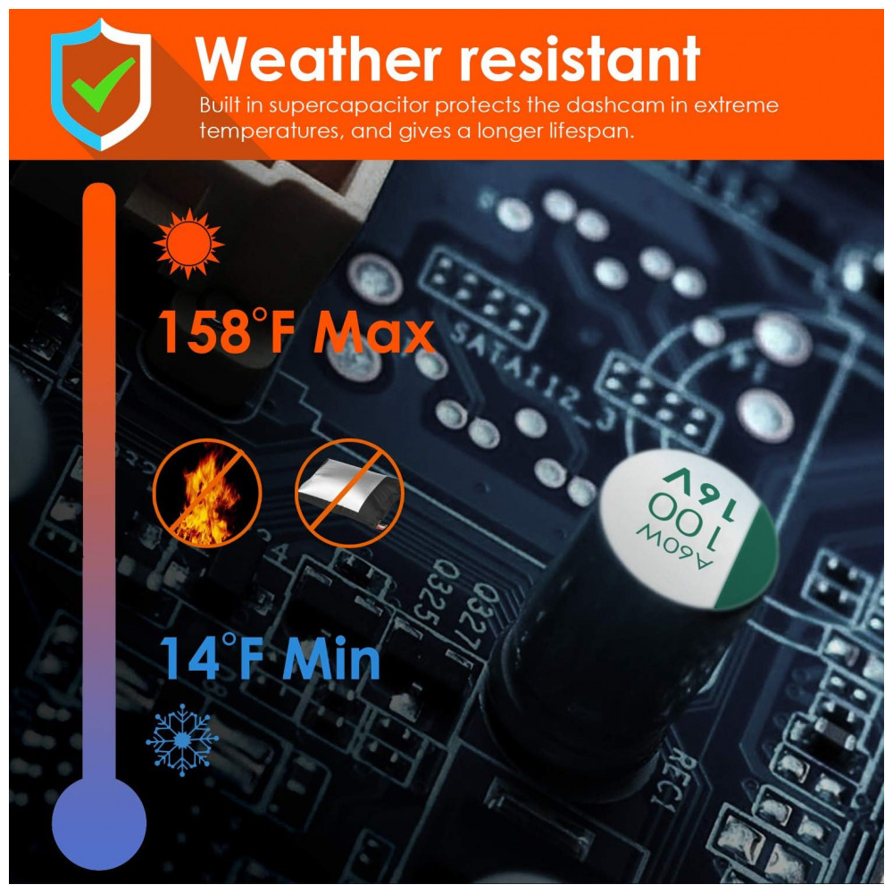 Com detecção de impacto, se um impacto foi detectado por uma câmera do painel do carro desligado, ela ligará automaticamente para registrar o painel.