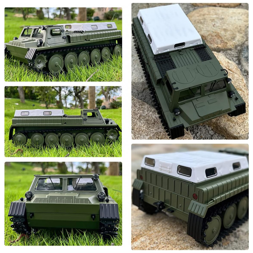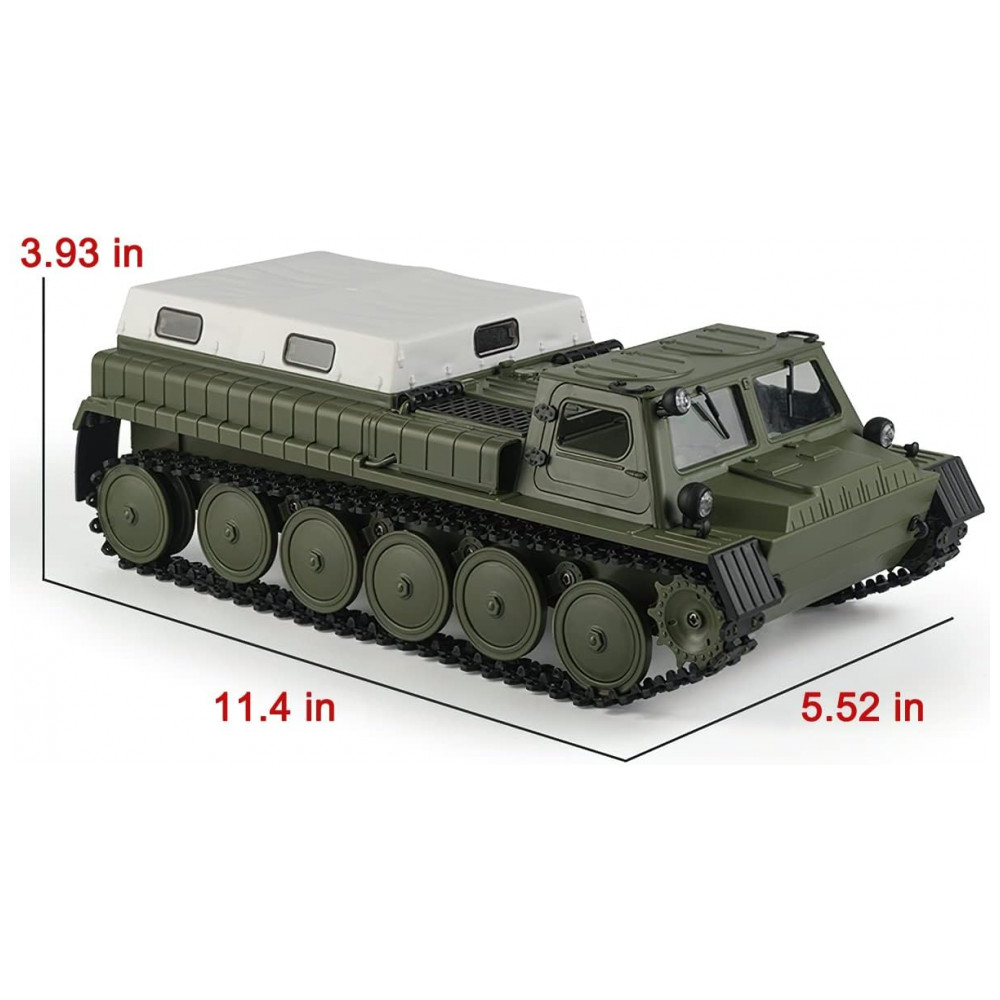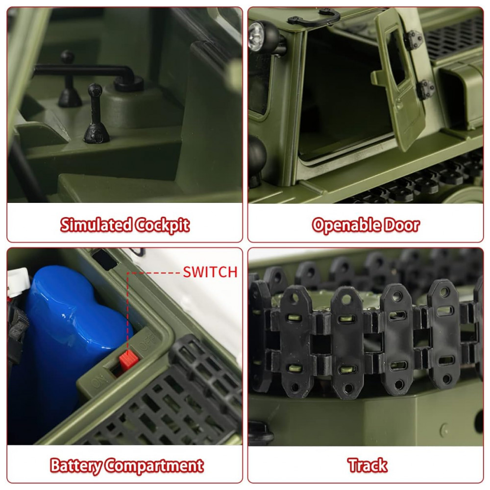 A carroceria é feita de plástico ABS e as trilhas são feitas de borracha, tornando este caminhão durável o suficiente para jogar em todos os terrenos em ambientes internos e externos.