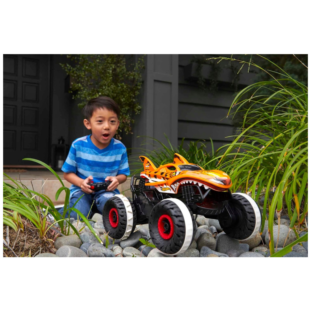 O Hot Wheels Monster Trucks HW Unstoppable Tiger Shark RC é um presente épico para qualquer fã de RC e crianças de 4 anos ou mais.