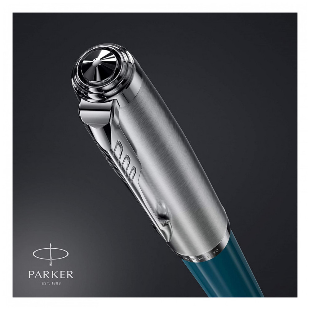 Caneta Esferográfica Executiva Vertical com Tinta e Recarga de Alta Qualidade, PARKER 2123506, Azul: Parker 51 é uma versão moderna do ícone , uma vez aclamado como o mais procurado do mundo, lançado pela primeira vez em 1941 Barril de resina preciosa Teal Blue brilhante durável e tampa de aço inoxidável com acabamentos em paládio e o clipe de seta PARKER exclusivo Apresentando uma ponta de aço inoxidável com capuz exclusiva, proporcionando uma experiência de escrita confiável e pessoal Uma silhueta aerodinâmica distinta com uma transição perfeita do cano para a ponta, beneficiando se da experiência da Parker para um artesanato superior Um presente único e sofisticado, sua caneta tinteiro Parker 51 é apresentada em uma caixa de presente PARKER premium com um cartucho de tinta QUINK preto longo