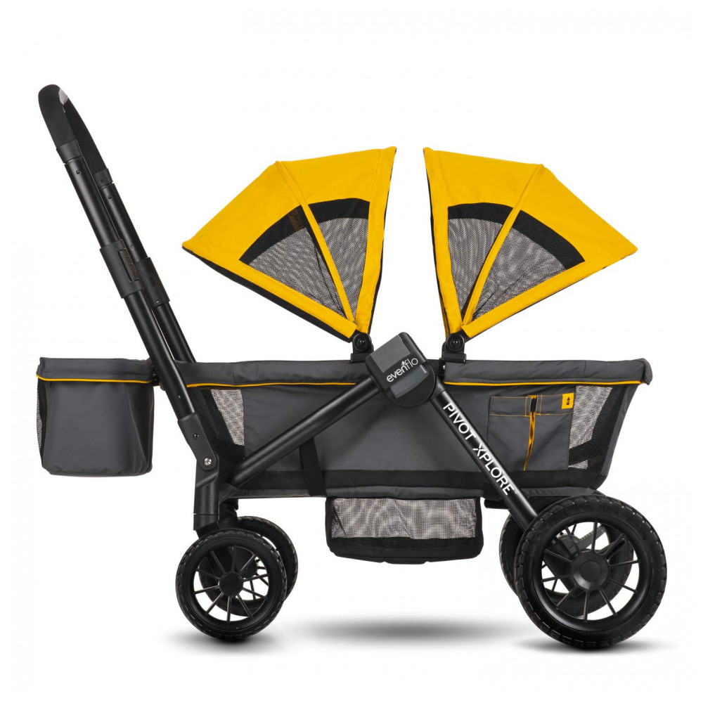 Carrinho de Bebê Pivot Xplore para Passeio Duplo com Rodas Off Road até 24 kg, EVENFLO 19132343, Cinza: Empurre ou puxe, decida na hora.