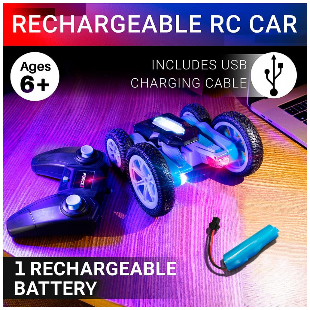 Carrinho de Controle Remoto, 4WD 2.4 Ghz, 360 com Bateria Recarregável, FORCE1, Azul