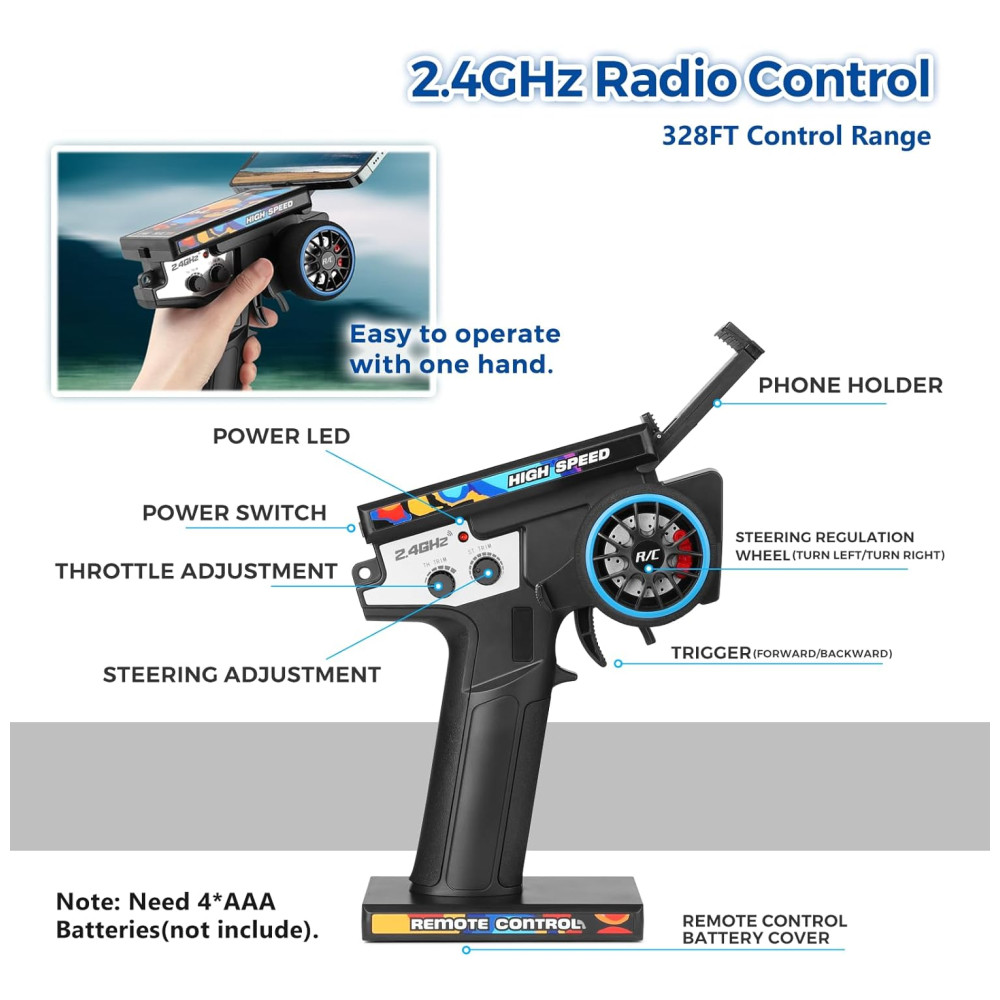 Carrinho de Controle Remoto para Adultos Off Road Até 15 km por hora, Recarregável, KKONES, Azul
