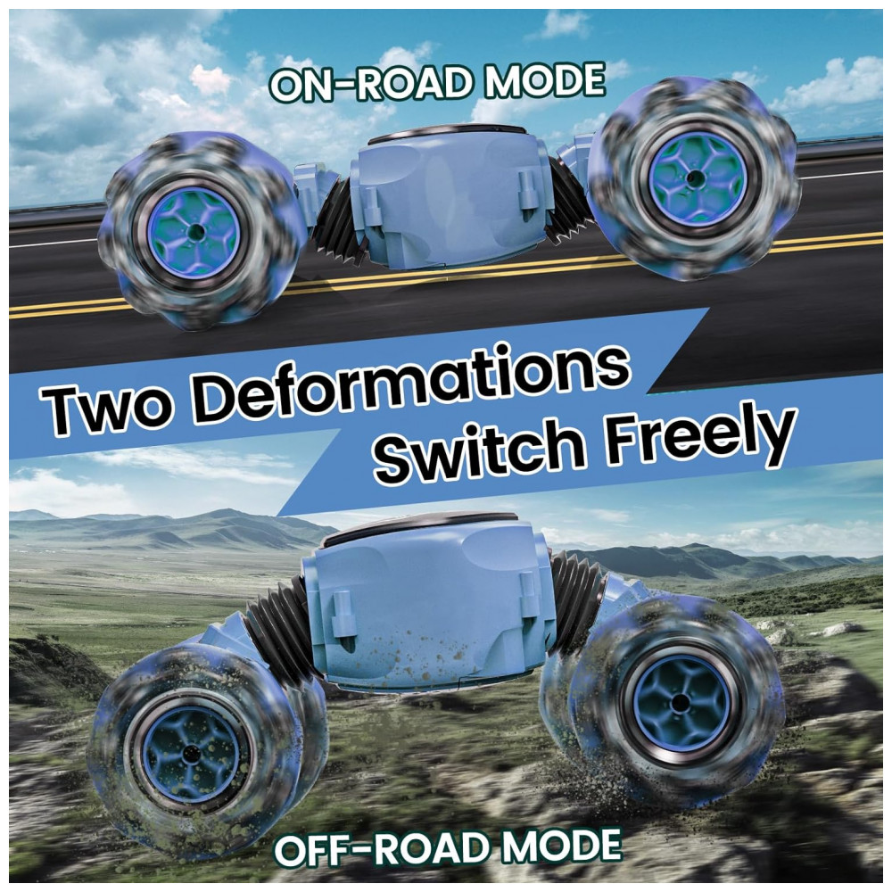 Carrinho de Controle Remoto e Sensor de Gestos 4WD 2,4 GHz com Luzes e Giratório de Dupla Face 360, Tecnock, Azul