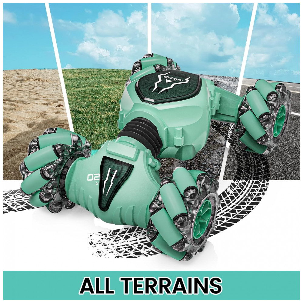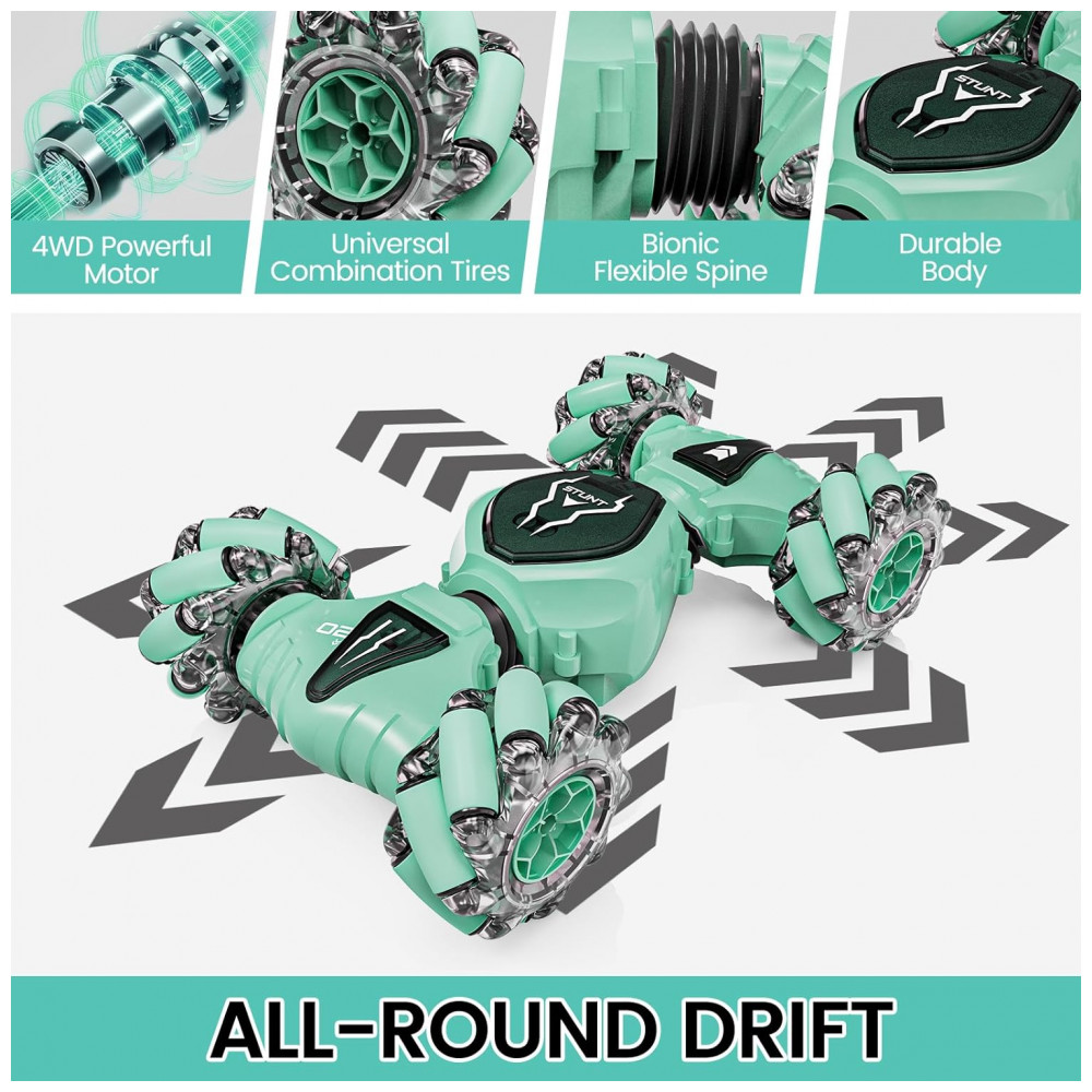 Carrinho de Controle Remoto e Sensor de Gestos com Modo Giratório Dupla Face 360 e Luzes, Tecnock, Verde: Este carro de controle remoto por gestos é um veículo de acrobacias versátil, capaz de se mover em todas as direções e flutuar em todas as direções, girar 360 graus, torcer e deformar, além de alternar livremente entre os modos rodoviário e offroad.