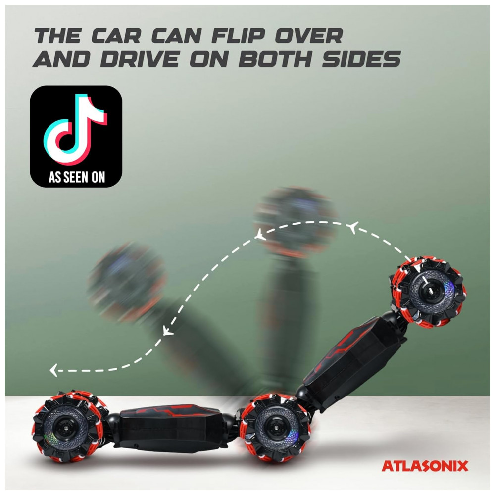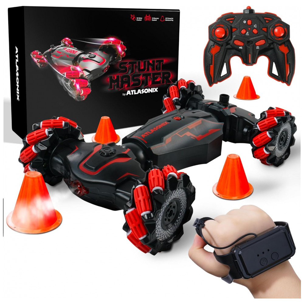 Carrinho de Controle Remoto e Sensor de Gestos com Rotação de 360, Luzes e Música, Atlasonix, Preto e Vermelho