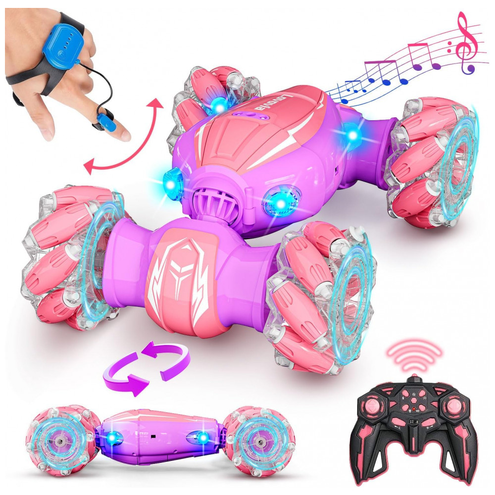 Carrinho de Controle Remoto e Sensor de Gestos com Tração Controlada Manualmente, Rotação de 360 , Luz e Música, Lovovia, Rosa