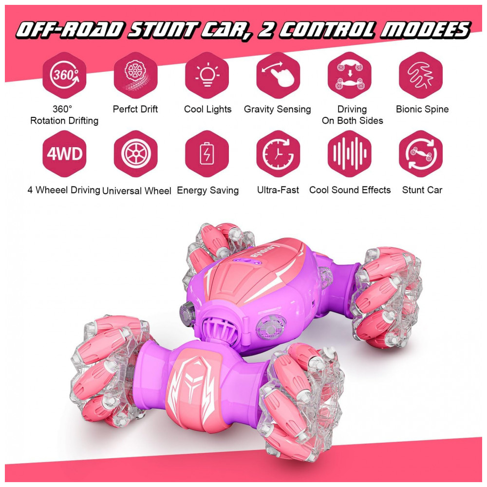 Carrinho de Controle Remoto e Sensor de Gestos com Tração Controlada Manualmente, Rotação de 360 , Luz e Música, Lovovia, Rosa: Atualize sua experiência de carro RC com nosso carro acrobático RC com detecção de gestos Com tecnologia revolucionária de detecção de gestos, este carro permite controlar os movimentos simplesmente acenando com a mão.