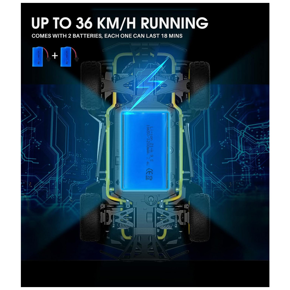 Carrinho de Controle Remoto Escala 116 4WD até 25 km por hora, com Baterias Recarregáveis, DODOELEPH K 04, Preto