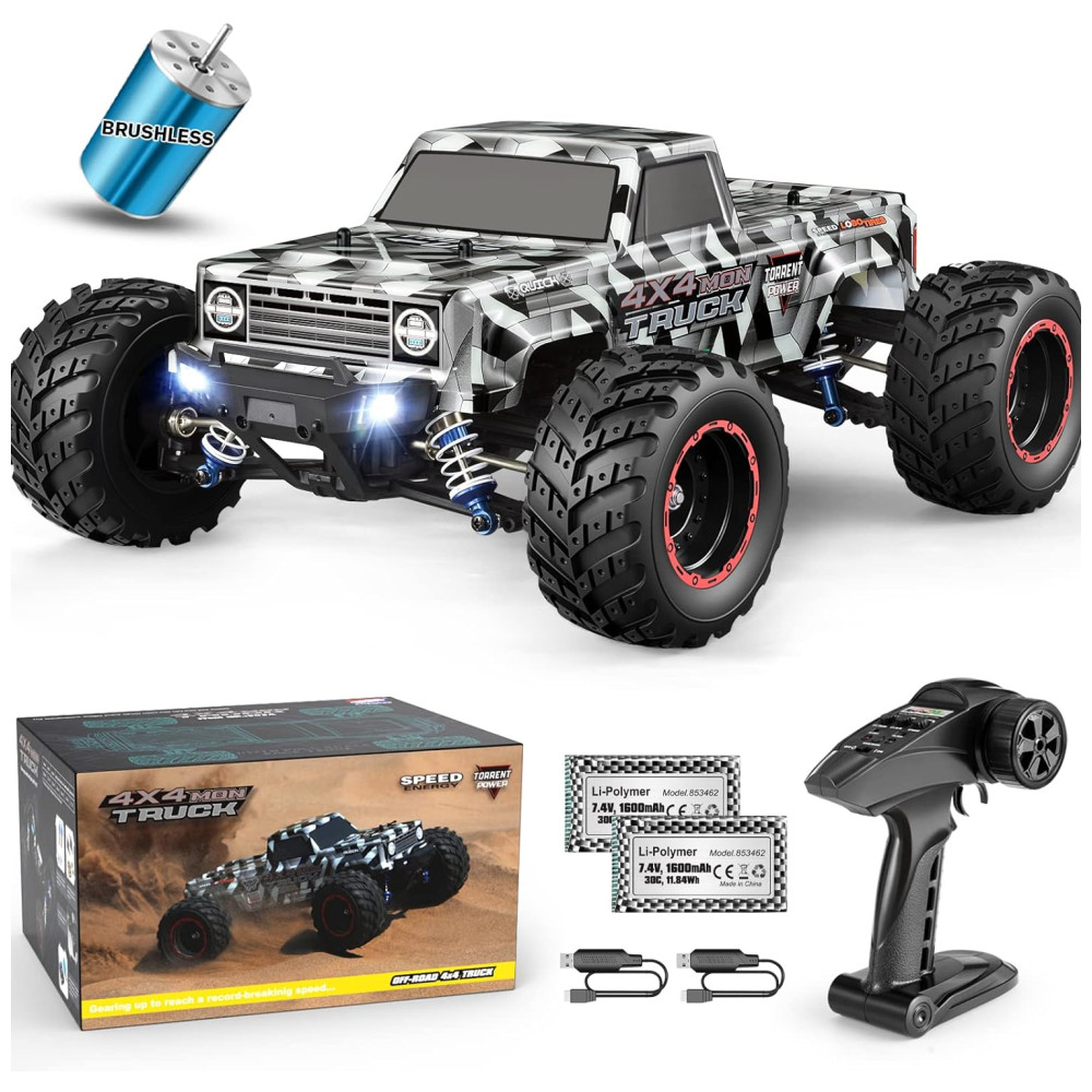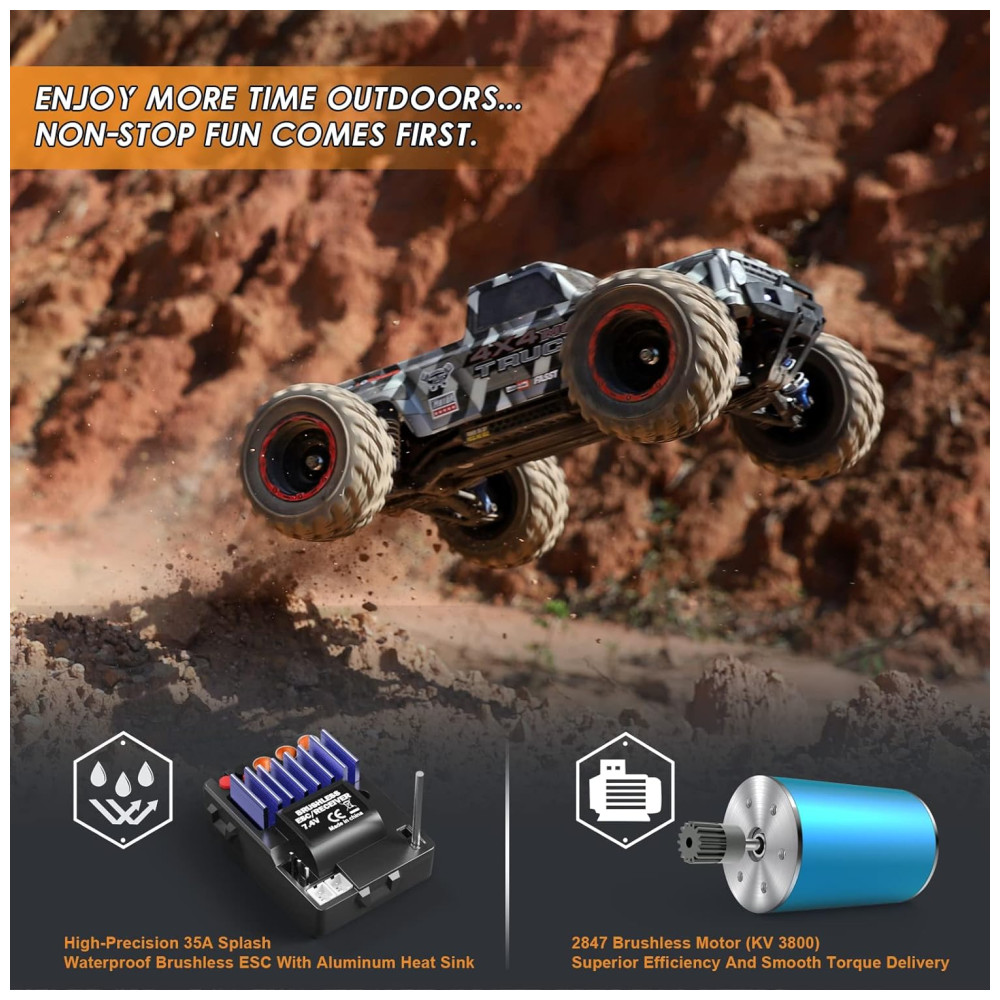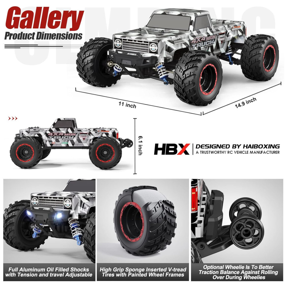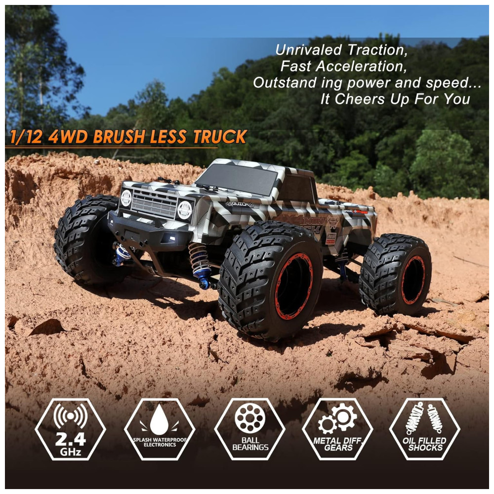 Carrinho de Controle Remoto Off Road 4×4 sem Escova, Escala 1 12 com Velocidade até 55 km h, Haiboxing 903A, Preto e Cinza