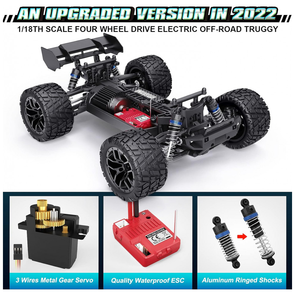 Carrinho de Controle Remoto Off Road até 36 km por hora, Tração 4 x 4, Idade Recomendada 8, HAIBOXING 18858, Azul