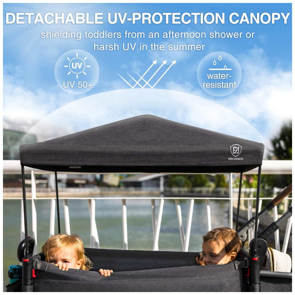 Carrinho de Passeio Vagão para 2 Crianças com Guiador Ajustável e Bolsos, Ever Advanced, Cinza: Este carrinho de passeio duplo é a escolha perfeita para pais que priorizam o conforto e a segurança de seus filhos.