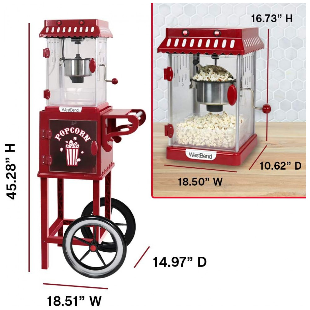 Carrinho de Pipoca Vintage com Panela Antiaderente, 110v, WEST BEND PCMC20RD13, Vermelho