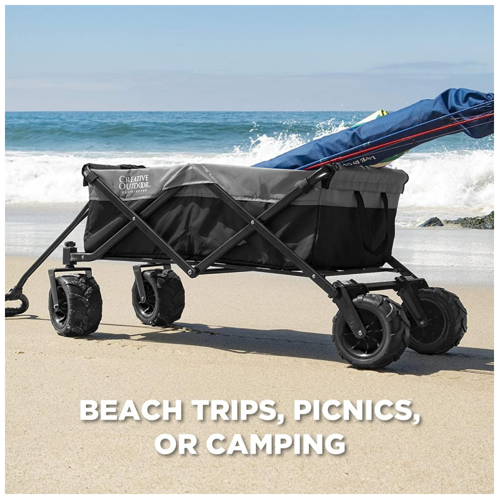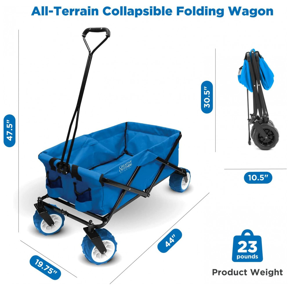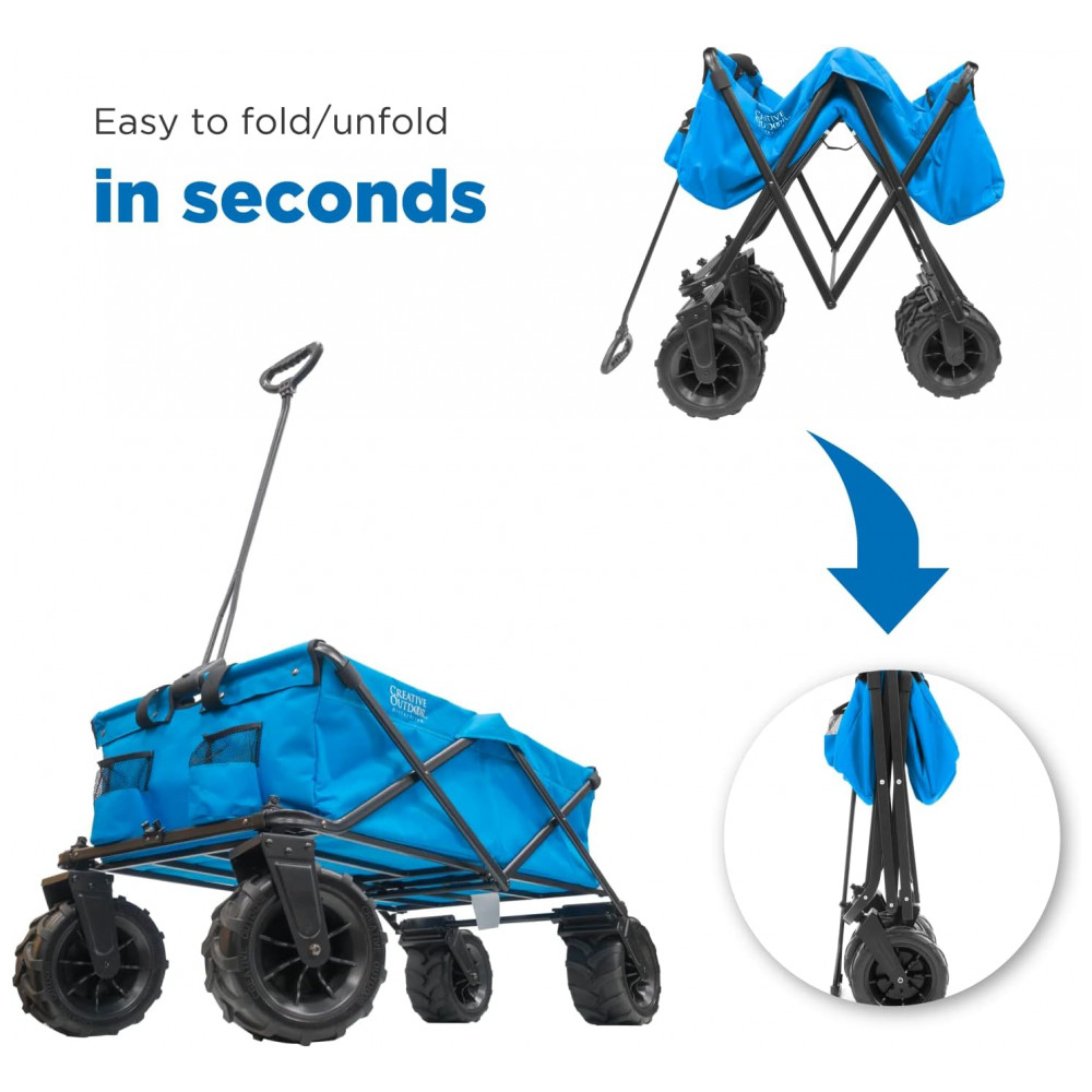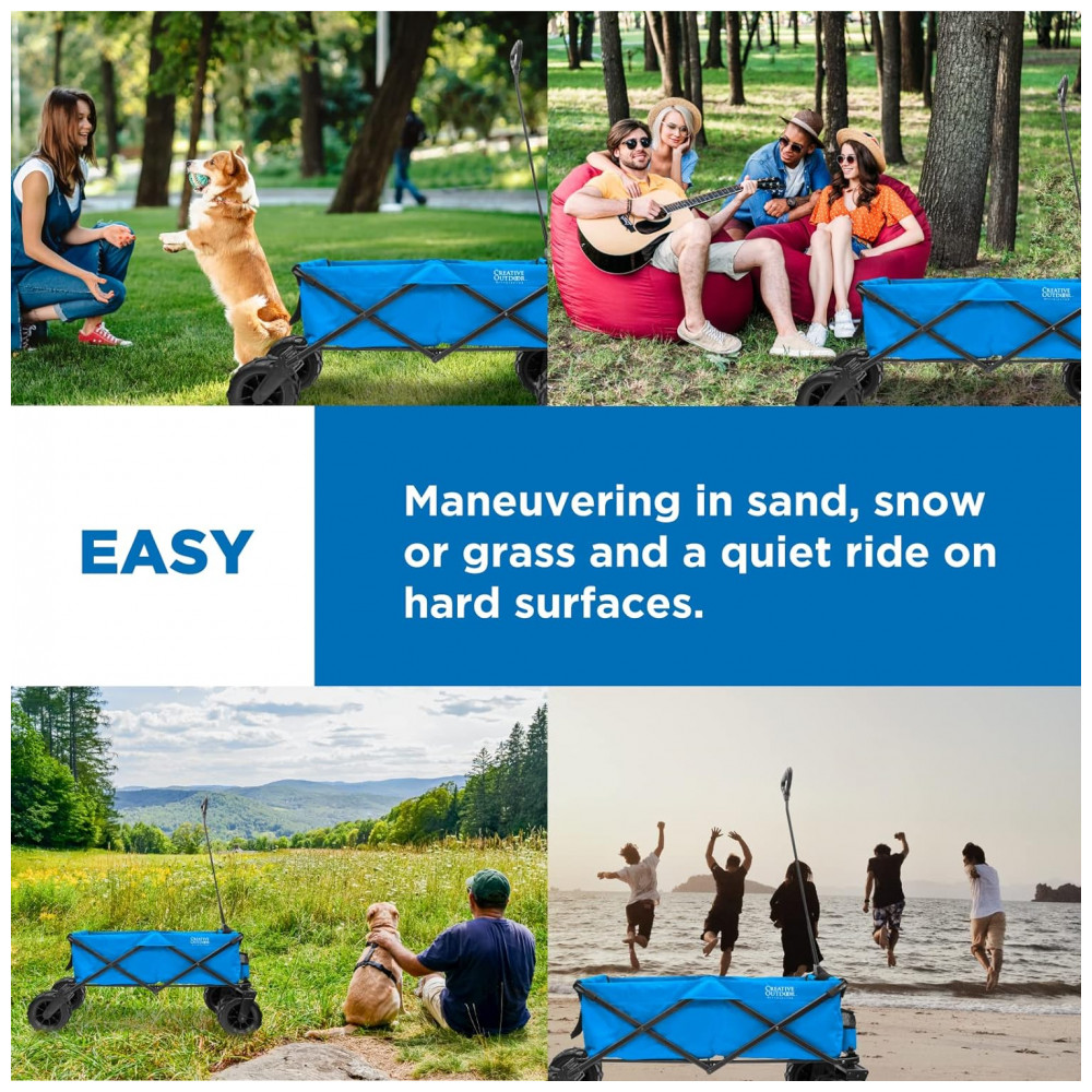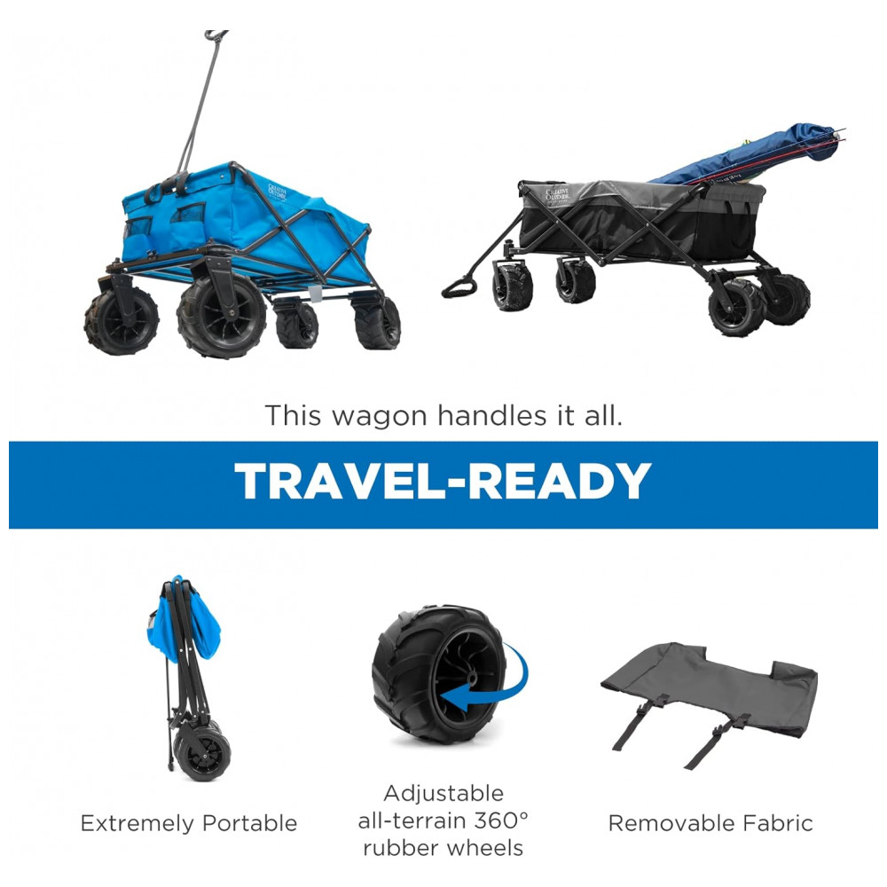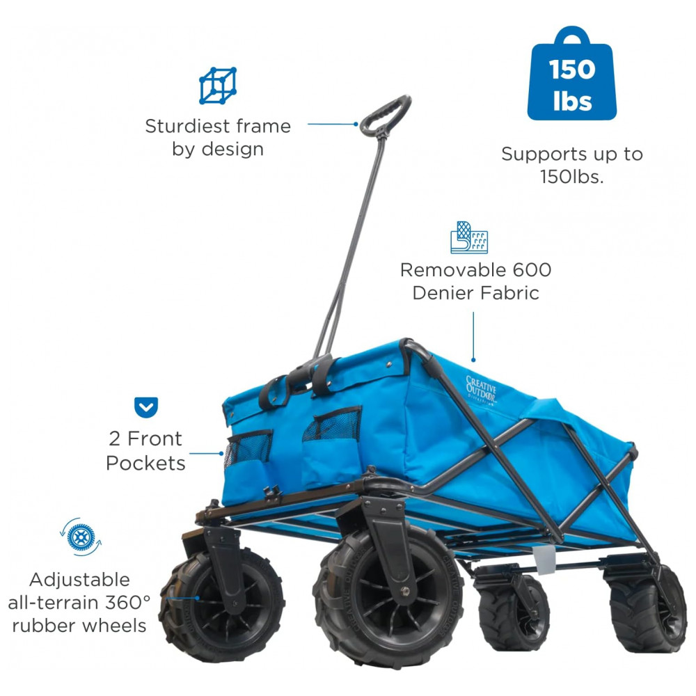 Carrinho Dobrável para Camping e Jardim com Rodas para todos os Terrenos, Capacidade 70kg, Creative Outdoor, Azul Frio: ENORMES RODAS DE BORRACHA PARA TODO O TERRENO TECIDO RESISTENTE REMOVÍVEL o tecido é resistente e durável para lidar com qualquer coisa que você jogue nele e pode ser facilmente removido e limpo com um enxágue da mangueira ou simplesmente limpando o.