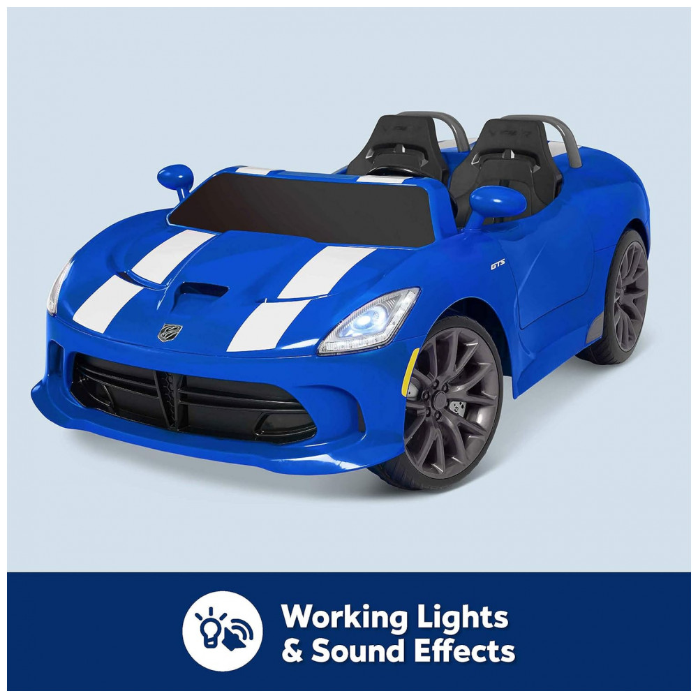 Carro, Carrinho Elétrico Infantil a Bateria 12V 2 Assentos para até 58 kg, 3 a 7 Anos, KID TRAX KT1124WM, Azul: Pegue a estrada com um amigo a bordo com este brinquedo de passeio alimentado por bateria Dodge Viper SRT 12V da Kid Trax.