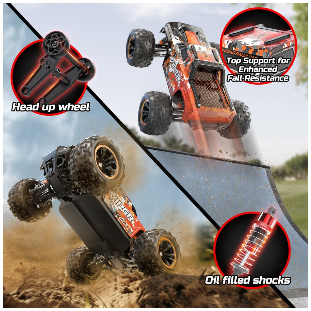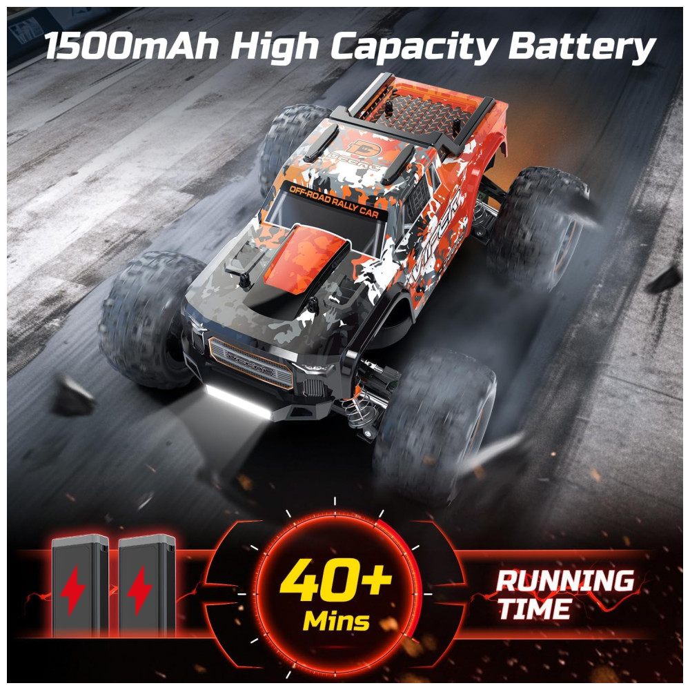 Carro de Controle Remoto com Tração nas 4 Rodas, Atinge 52 km h, DEERC H16R, Laranja e Preto