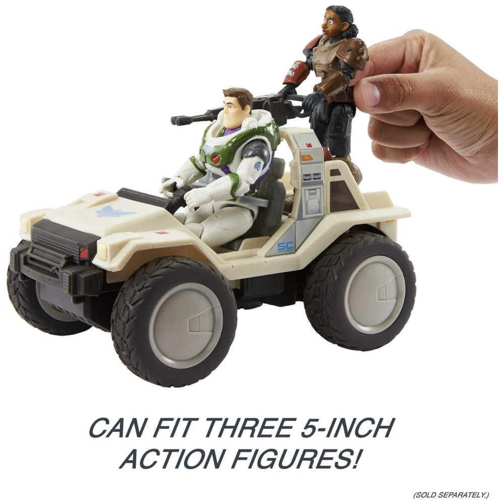 Este UTV de escala 120 é estilizado para atravessar a vasta paisagem lunar da imaginação das crianças e pode acomodar três bonecos de ação de 5 polegadas vendidos separadamente para brincadeiras e aventuras aprimoradas.