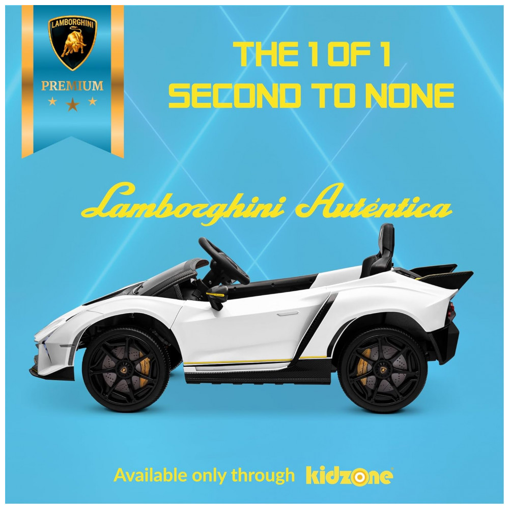 Carro Elétrico Infantil a Bateria com 4 Motores, Controle Remoto, Bluetooth e Suspensão de Mola, 12V, Kidzone Lamborghini, Branco: Este carro elétrico infantil Lamborghini Rideon imita perfeitamente o design elegante e fino do verdadeiro Lamborghinis, com detalhe e autenticidade excepcionais.