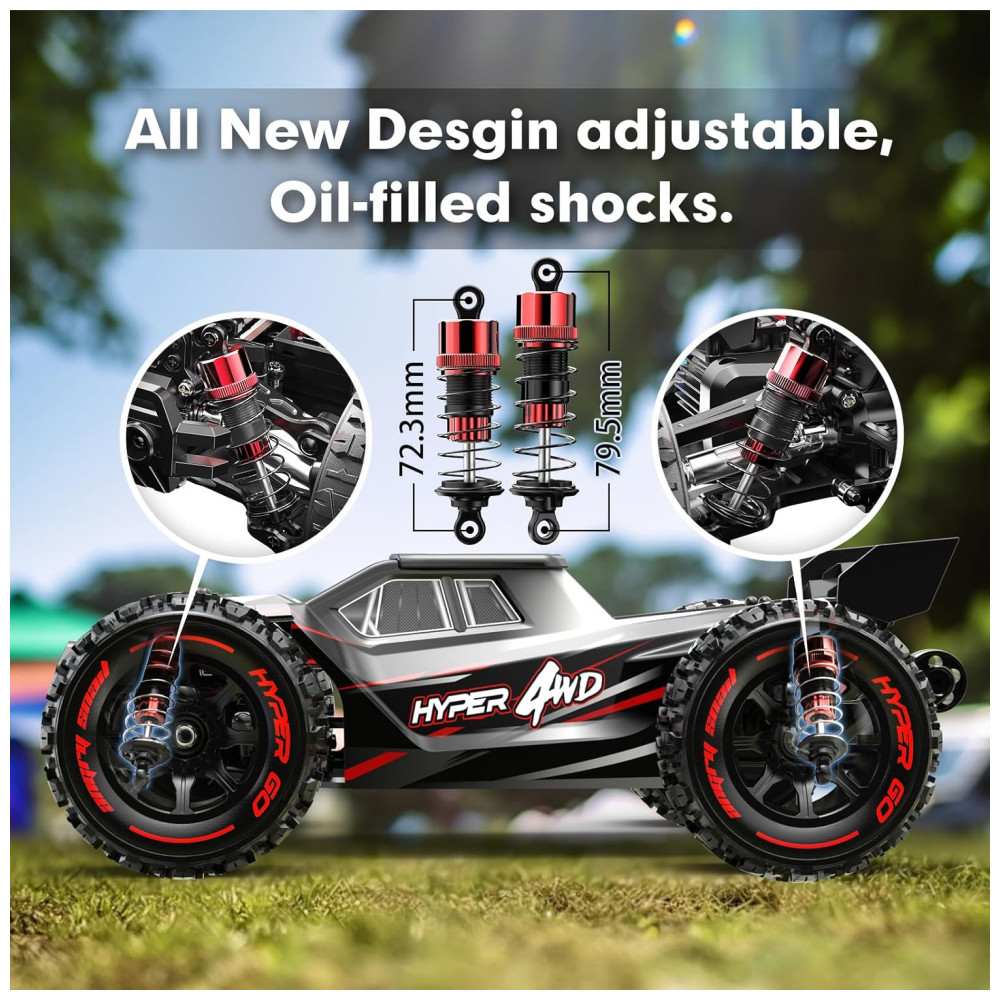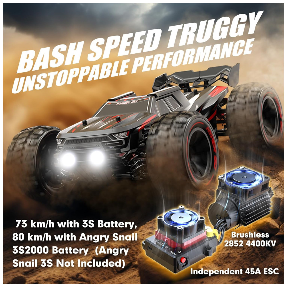 Carro Off Road de Controle Remoto, Atinge até 80 km h, Motor sem Escova, para Adultos e Adolescentes, HYPER GO H14BM, Preto: Este é um carro RTR pronto para correr projetado para velocidades extremas.