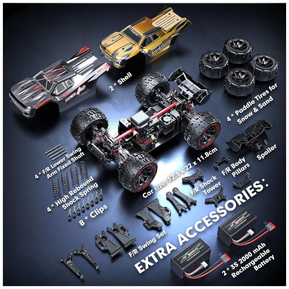 O receptor independente e bateria 2S3S compatível com 45A ESC tornam este carro mais potencial e atualizável.