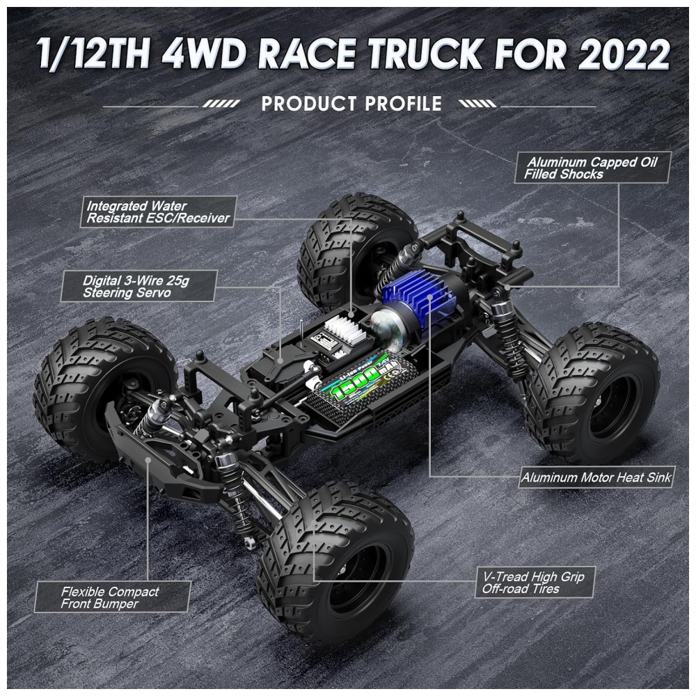 Carro RC Monster Truck 1 12 Escala 38km h HAIBOXING Para Crianças e Adultos Shantou Haiboxing Technology Education Model Co., Ltd.: Este caminhão RC offroad 4X4 de escala 1 12 é alimentado por um motor 390 e atinge uma velocidade máxima de 38KMH.