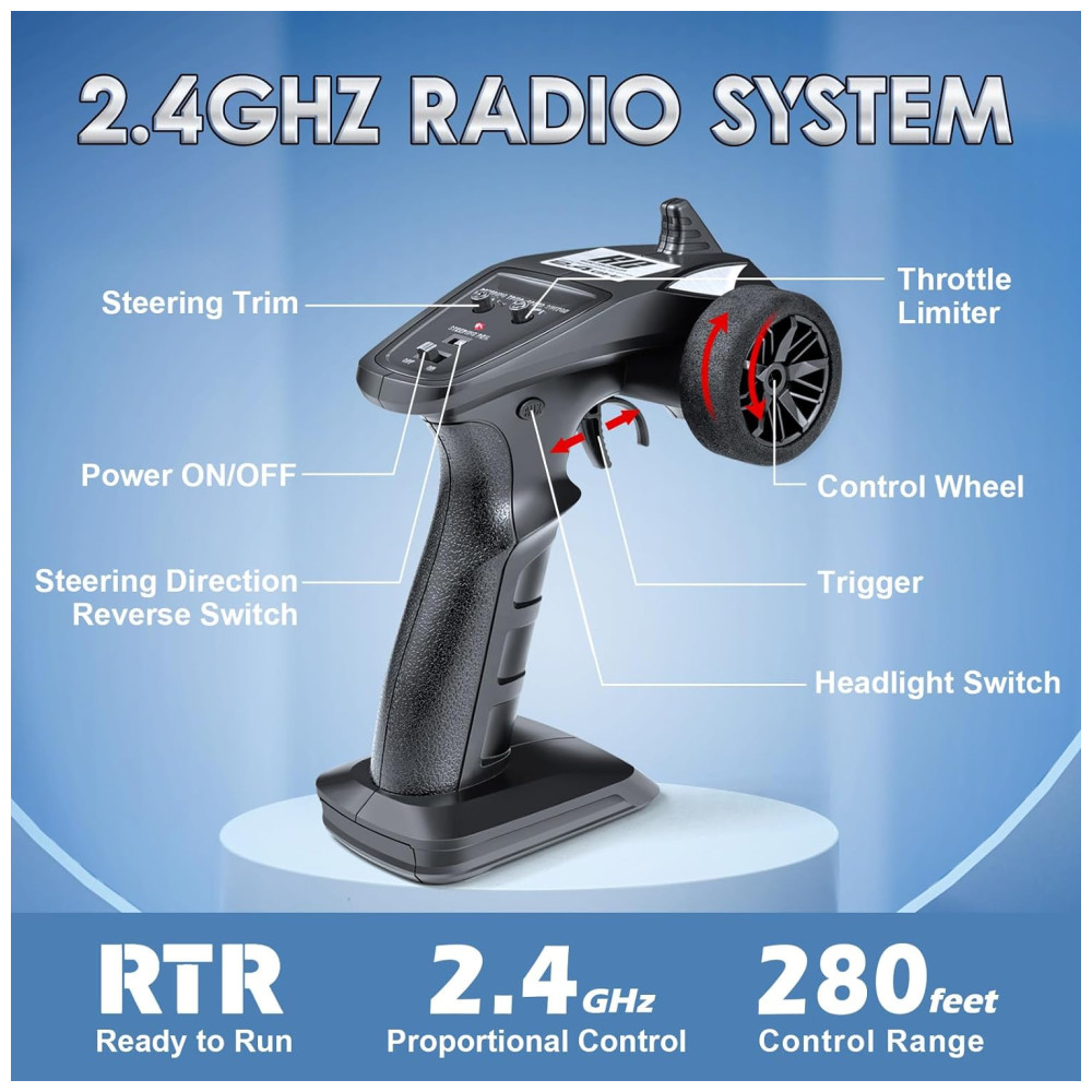O sistema de rádio de 2,4 GHz fornece distância de controle de 280 pés 85 m sem interferência de sinal, permitindo que vários jogadores corram juntos.