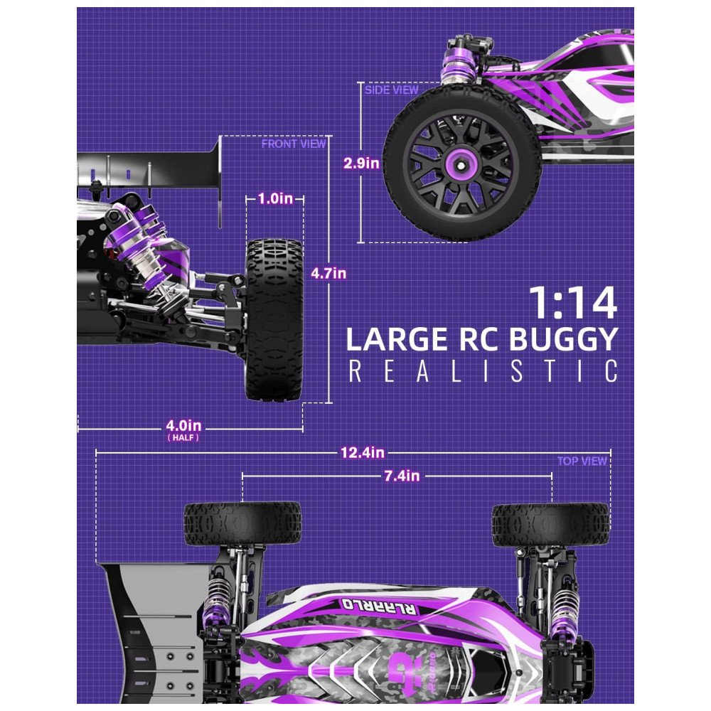 Carros RC Off Road de Alta Velocidade sem Escova para Adultos Velocidade Máxima de 90 KPH 4X4 com ESC Independente CROBOLL: O carro RC CROBOLL 114 é uma máquina potente equipada com um motor sem escova 28473200KV com carcaça de alumínio e engrenagem de metal, juntamente com um ESC 45A com ventoinhas de resfriamento e dissipador de calor de metal.