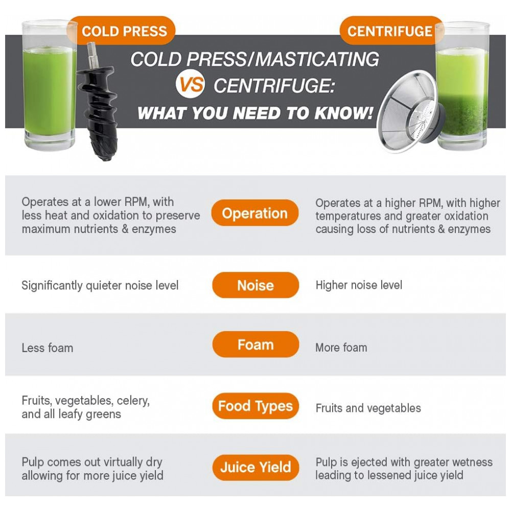 TECNOLOGIA DE PRENSA A FRIO Atinja seus objetivos de estilo de vida saudável com a tecnologia de suco de prensa a frio que elimina o calor e a exposição ao ar para o máximo valor n…
