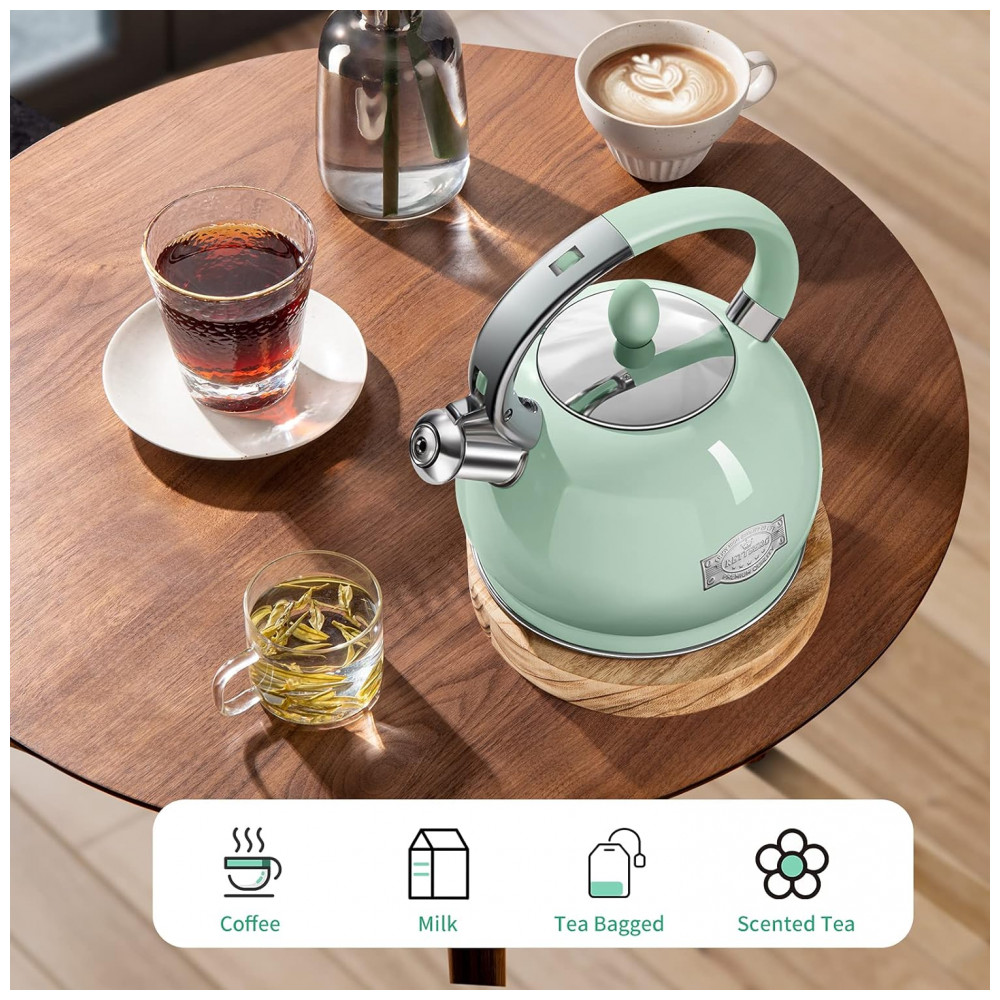 Chaleira de Chá 2.6L com Apito, Aço Inoxidável, RETTBERG VH 802, Verde
