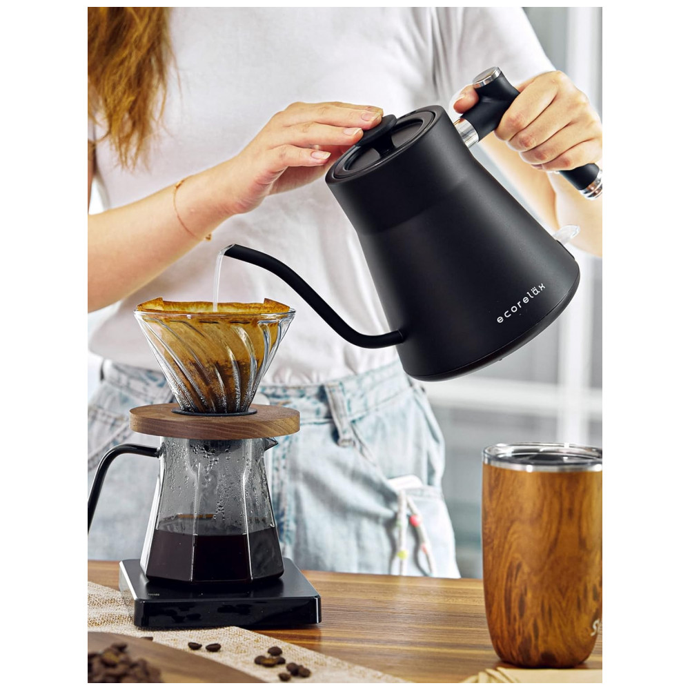 Baristas Choice O elegante bico de ganso biônico desta chaleira fornece um fluxo estável de no mínimo com zero gotas indesejadas para a extração delicada de seus grãos de café e ch…