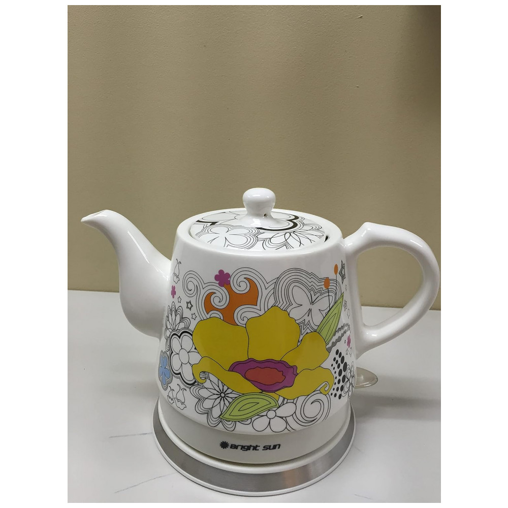 Chaleira Elétrica 1.2L com Desligamento Automático, Ceramica, 1000W, Floral, 110v, FIXTUREDISPLAYS, Branco