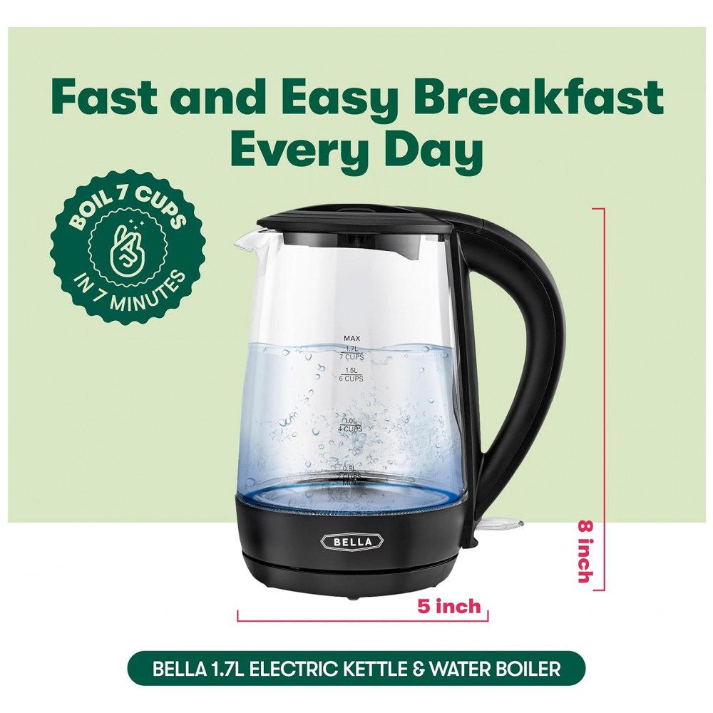 Seu corpo de vidro durável permite que você veja como água quente ferver para chá, café, aveia, sopas instantâneas e muito mais Essenciais para cozinha a Bella oferece uma gama completa de produtos de alta qualidade, incluindo fritadeiras a ar, waffle, torradeiras, cafeteiras, chaleiras elétricas, panelas lentas, máquinas de espresso, grelhas e espremedores.