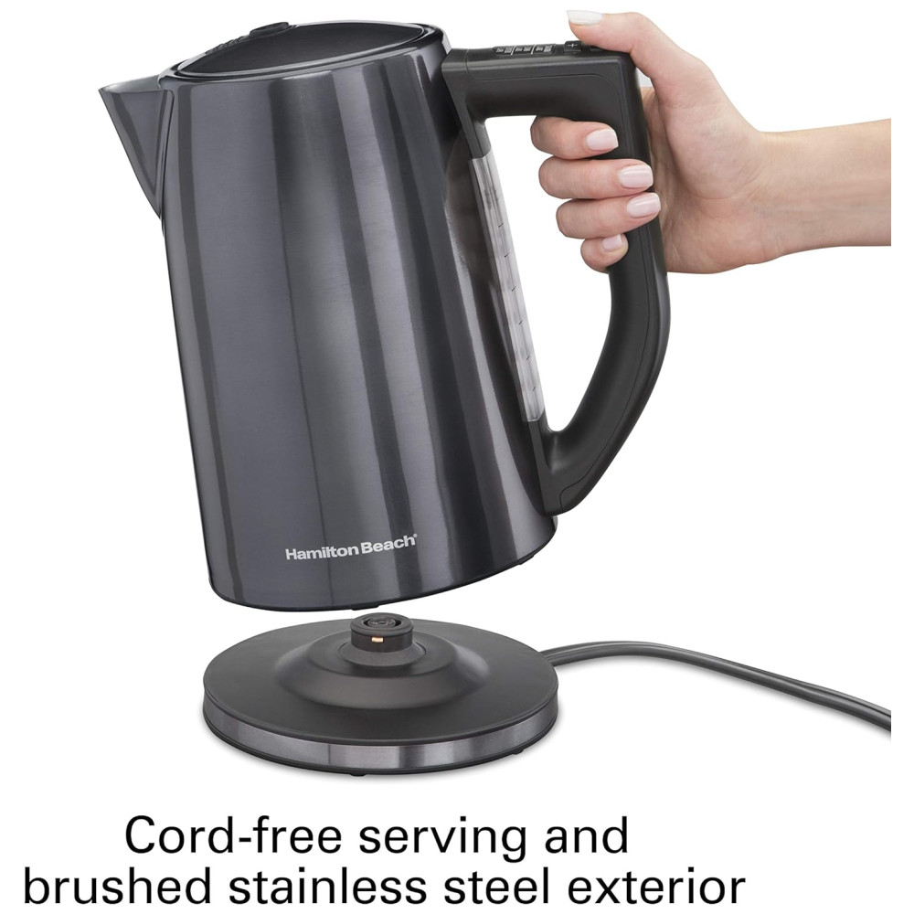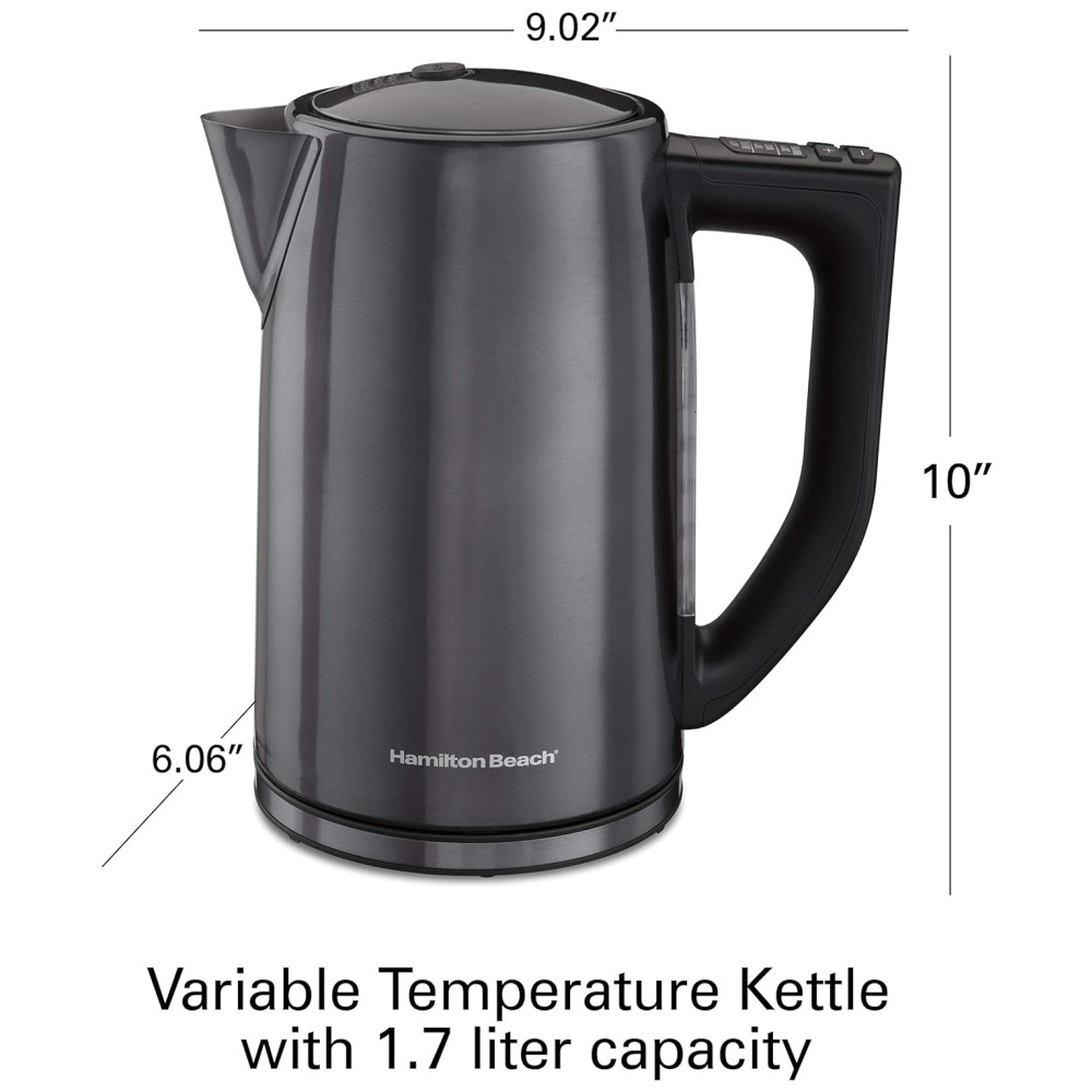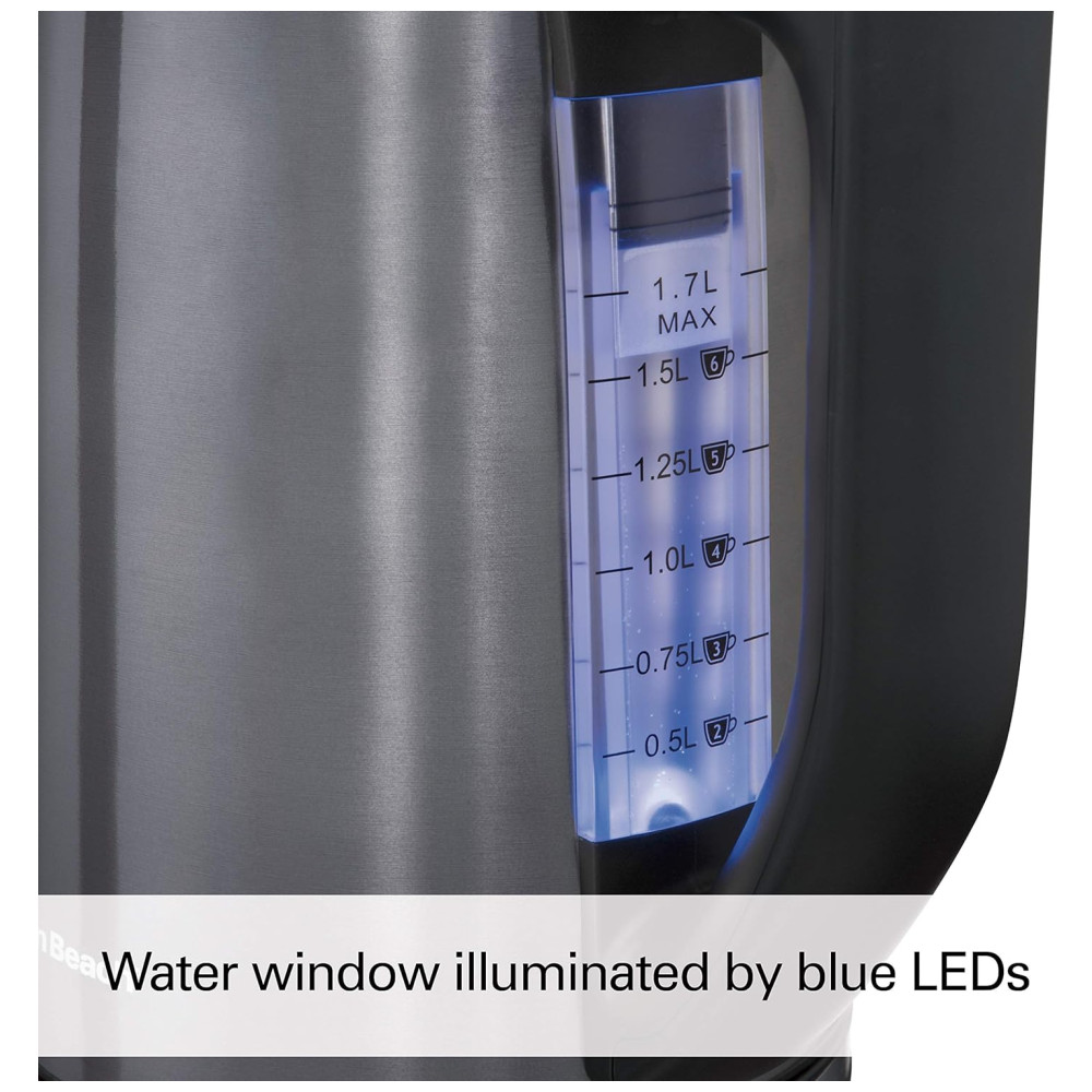 Chaleira Elétrica, 1,7L, 100V, HAMILTON BEACH 41027, Preto: 7 aquecedores indicadores de proteção e temperatura de um aquecedor elétrico, que corresponde à temperatura de um aquecedor elétrico, ideal para uma temperatura de um aquecedor elétrico ideal para um aquecedor.