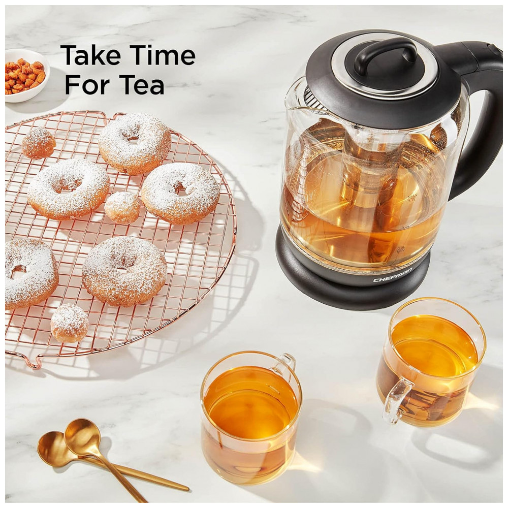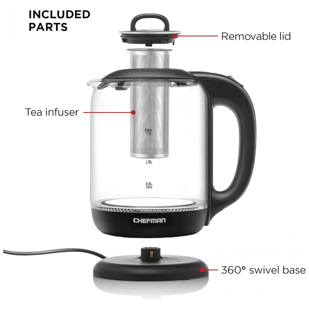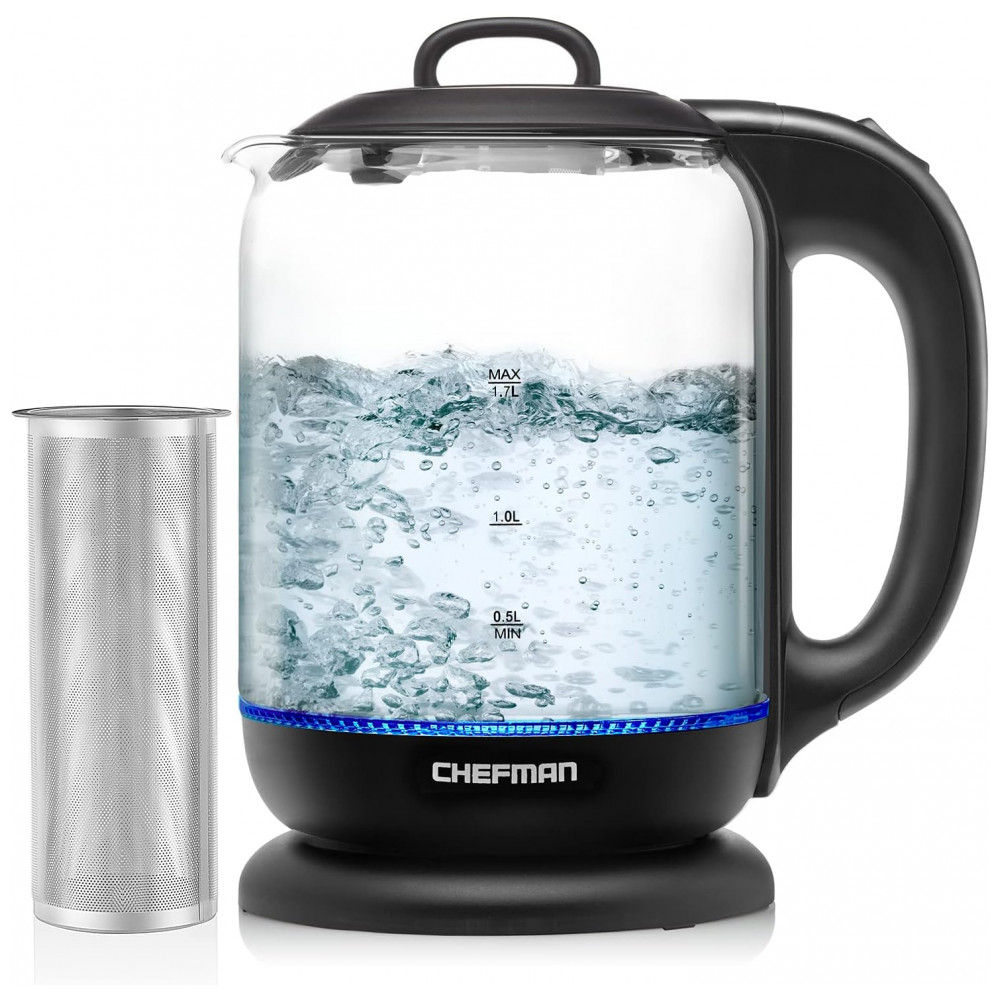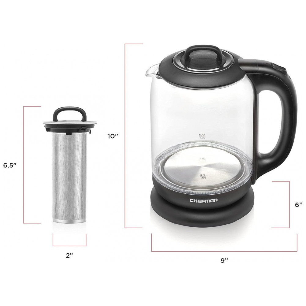Chaleira Elétrica 1.7L, Aço Inoxidável, Desligamento Automático, 1500W, 110v, CHEFMAN 1.7 Liter Electric Kettle, Preto: FERVER E BREW Ferva 1,7 litros de água quente para todas as suas bebidas favoritas.