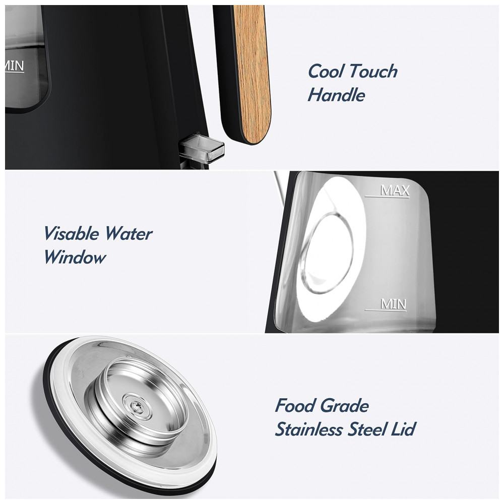 Chaleira Elétrica 1L com Desligamento Automático e Aço Inoxidável, 110v, TOPWIT, Preto