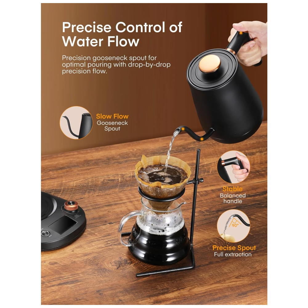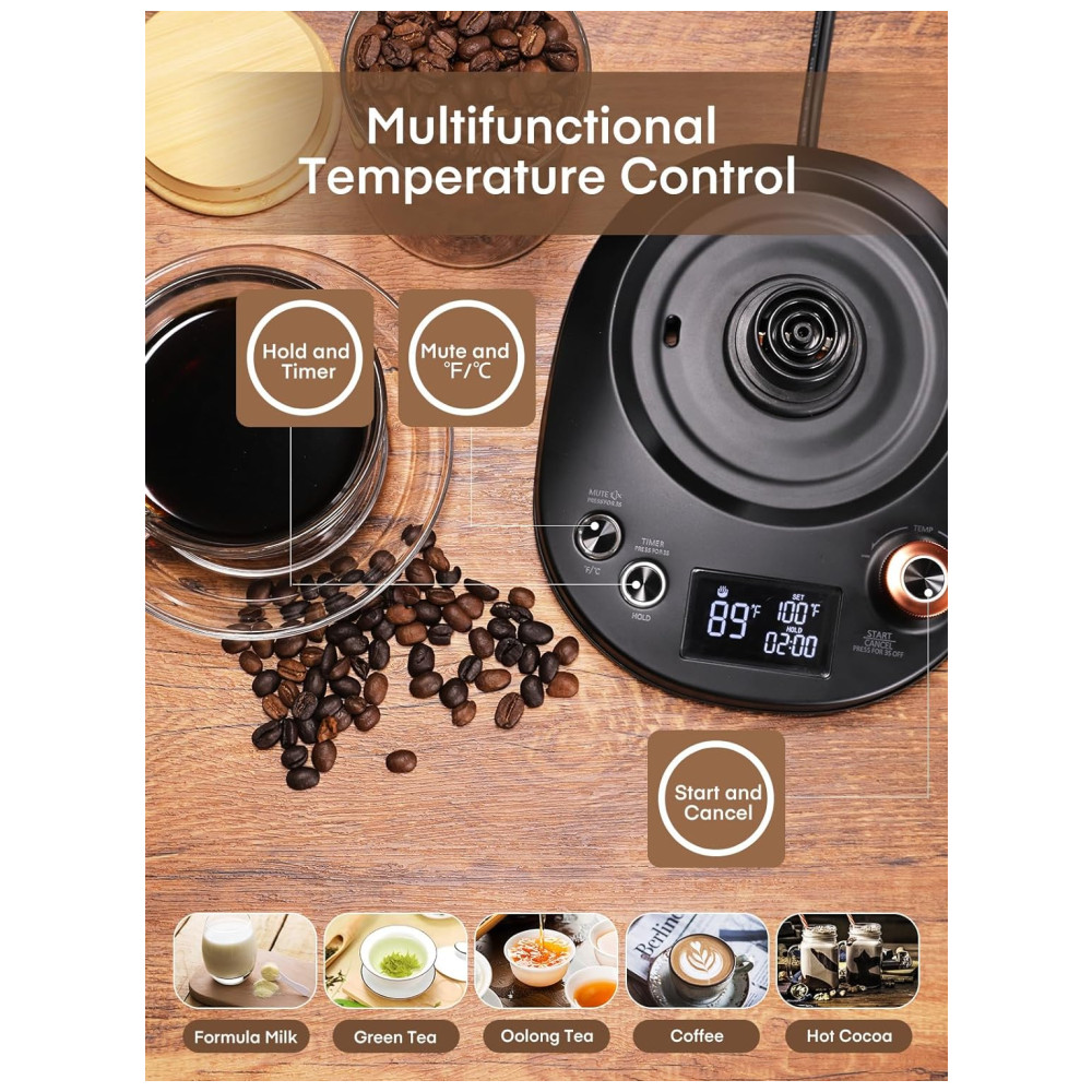 Chaleira eletrica pescoco de ganso elegante para controle preciso. Possui um programa de controle de temperatura integrado que permite uma faixa de controle de temperatura de 37 C…