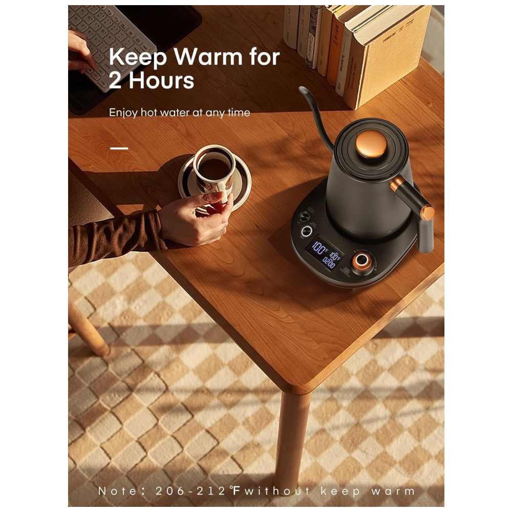 Com alta potencia de 1200 W, a chaleira pescoco de ganso aquece rapidamente e leva apenas 3 a 5 minutos para ferver uma panela com 0,8L de agua.