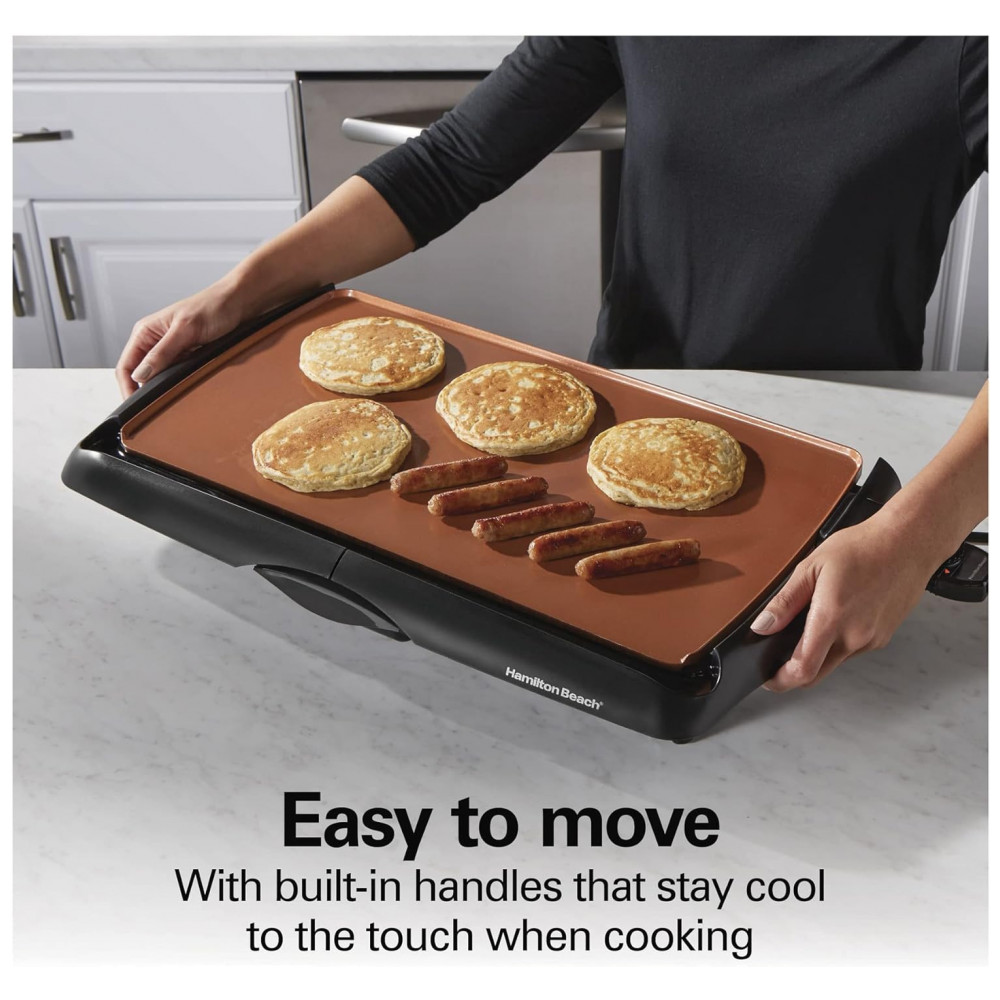 Com seu revestimento antiaderente de cerâmica e superfície de cozimento de 200 polegadas quadradas, você pode fazer uma refeição inteira com pouco barulho e fácil limpeza.
