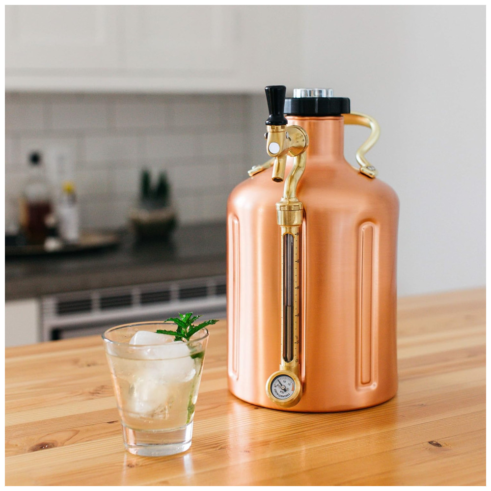 Chopeira Portátil 5L com Torneira e Regulador de CO2, Aço Inoxidável, Rose Gold, GROWLERWERKS Copper, Dourado