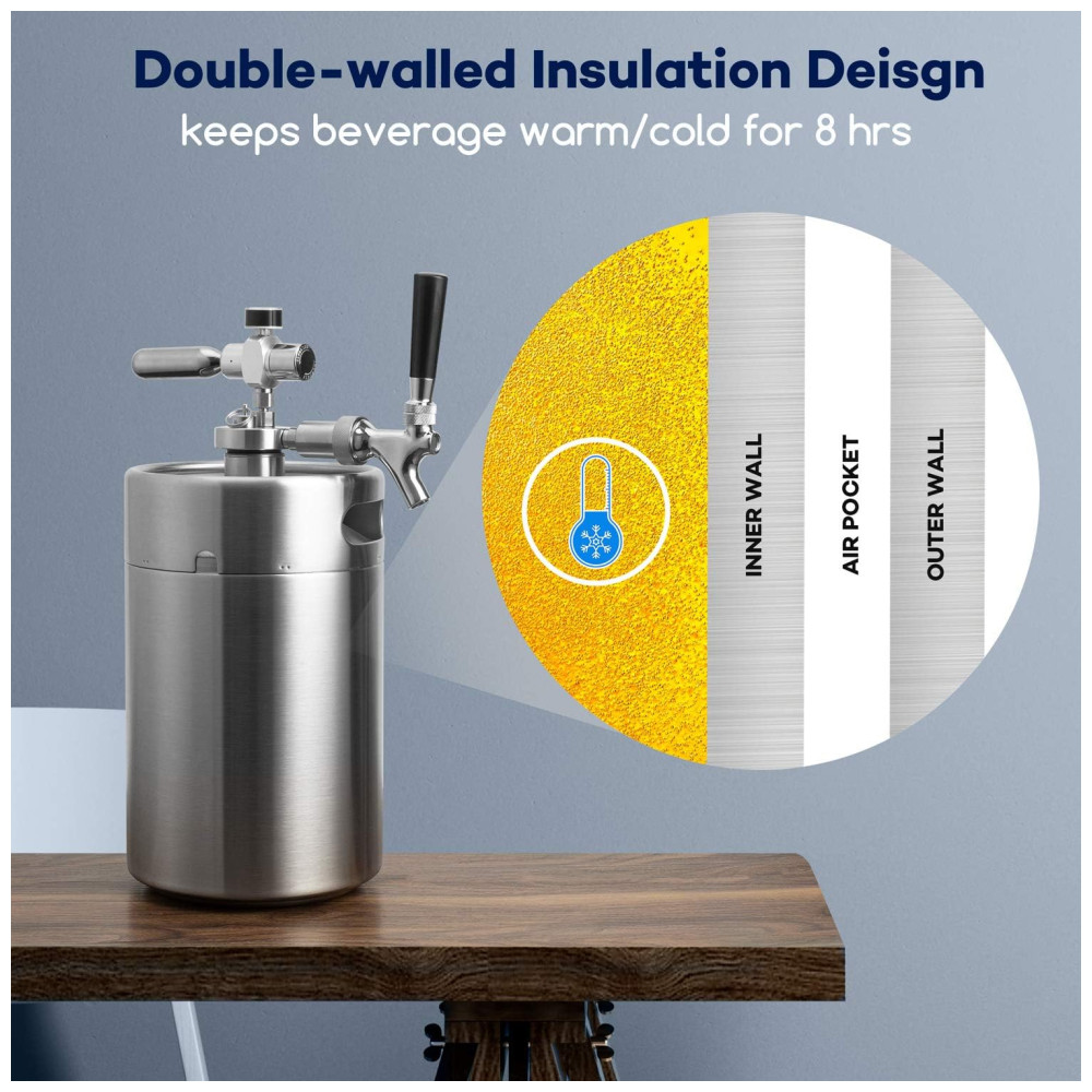 PAREDE DUPLA O isolamento de aço inoxidável de parede dupla mantém a bebida quente, fria por 8 horas. O kit dispensador de torneira growler para tanque de bebida é construído com a…
