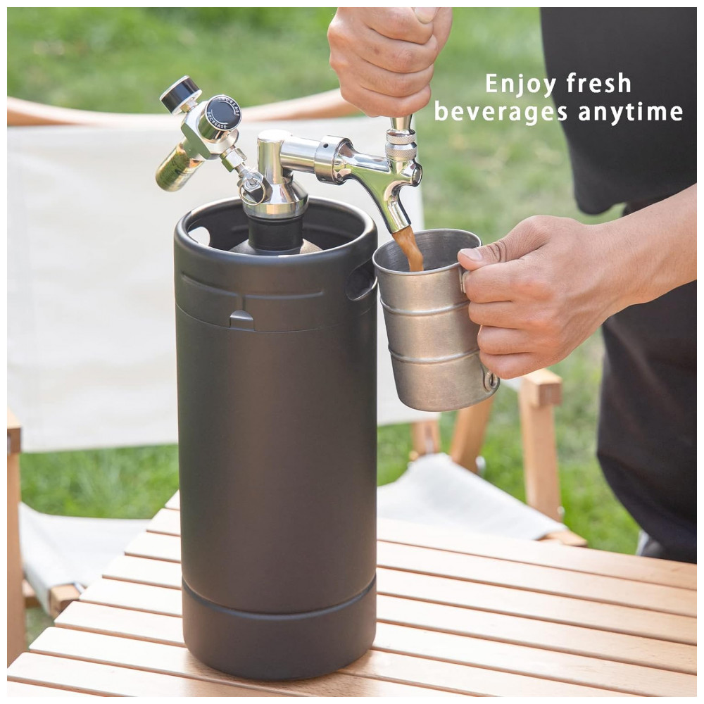 Chopeira Portátil 5L com Torneira e Regulador de CO2, Aço Inoxidável, TMCRAFT, Preto