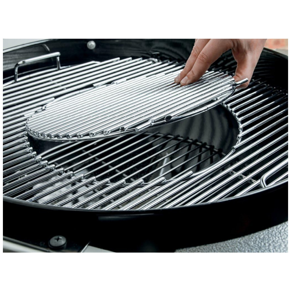 A grade de cozimento é compatível com pastilhas GBS e é articulada para adicionar carvão facilmente durante a grelha.