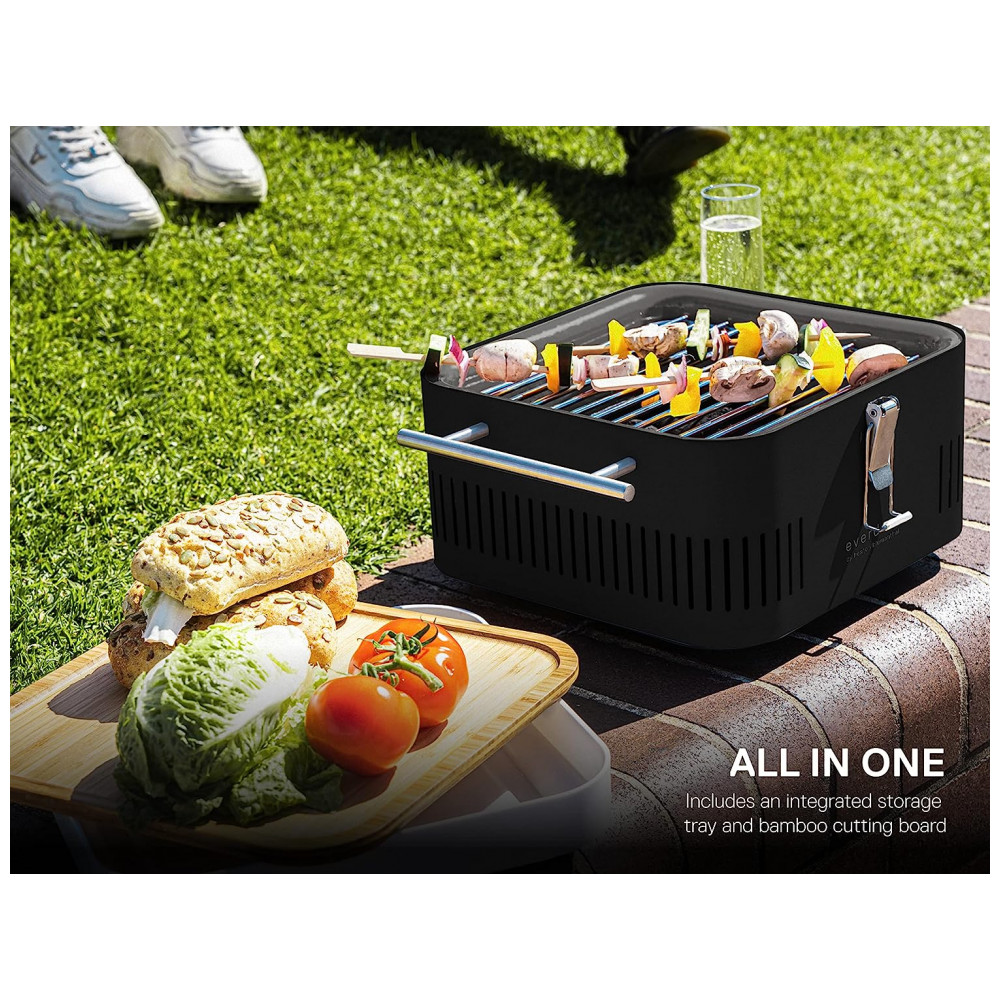 Churrasqueira á Carvão Portátil e Compacto serve até 4 Pessoas, EVERDURE HBCUBESUS, Azul: PORTÁTIL E COMPACTO Fácil de transportar devido ao aço leve de qualidade e alças frias ao toque, ideais para grelhar ao ar livre, se você grelhar com a família e amigos na praia, desfrutar de uma grade traseira ou precisar de acessórios de acampamento.