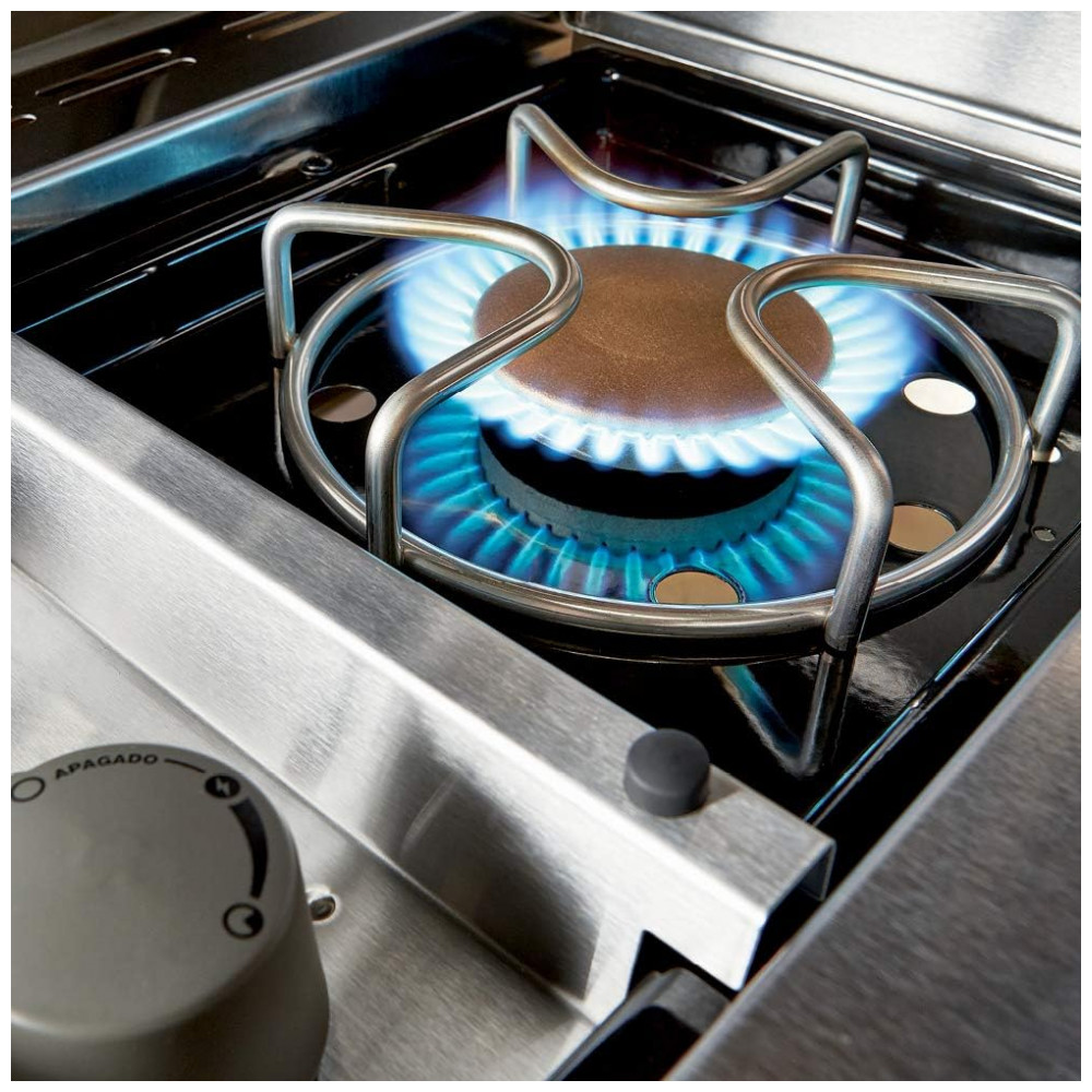 Queimador lateral, queimador Sear Station, queimador de fumaça e queimador de rotisserie infravermelho montado na parte traseira.