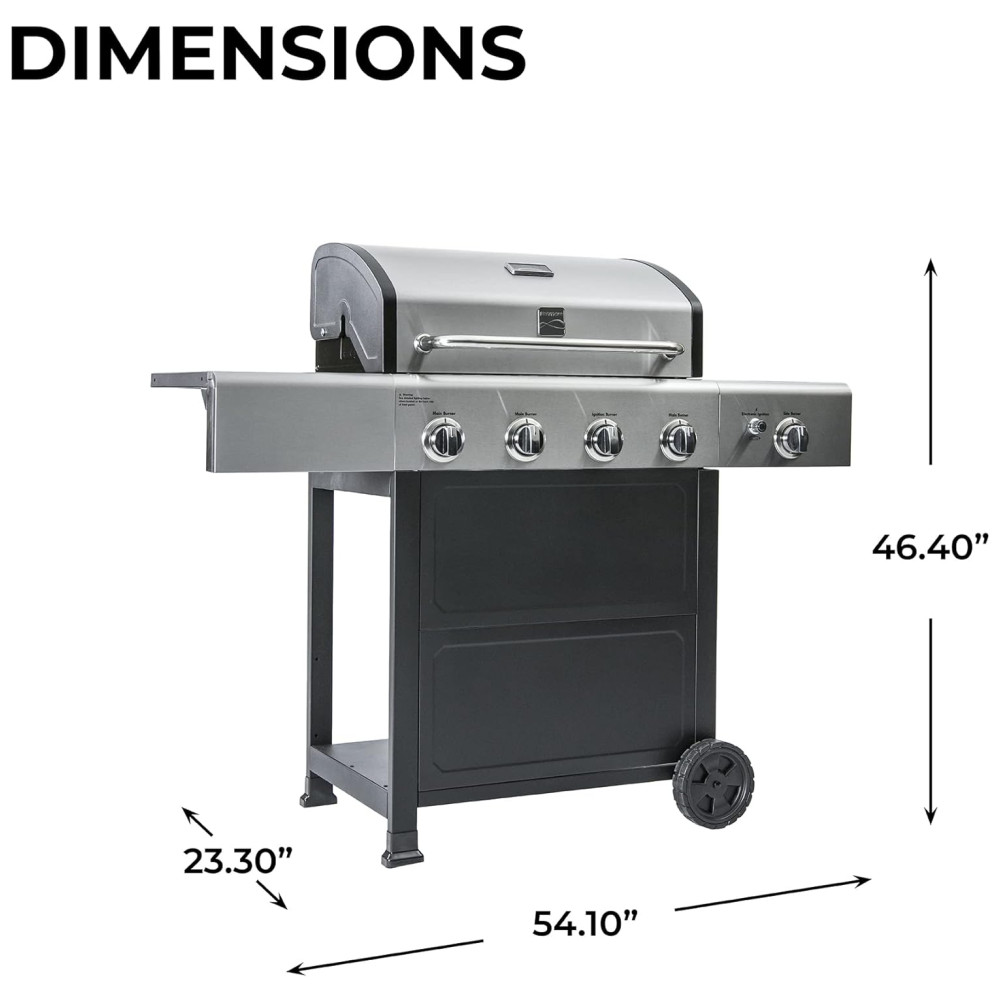 Churrasqueira a Gás 53.000 BTU com 4 Queimadores, 2 Portas e Mesas Laterais em Aço Inoxidável, KENMORE PG A40406S0L, Preto