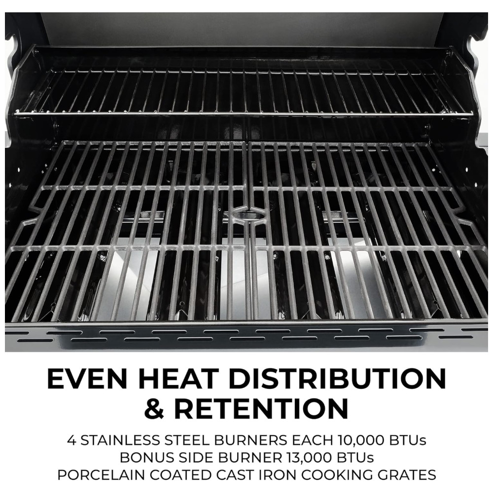 Churrasqueira a Gás 53.000 BTU com 4 Queimadores, 2 Portas e Mesas Laterais em Aço Inoxidável, KENMORE PG A40406S0L, Preto: SAÍDA DO QUEIMADOR 4 queimadores principais em tubo de aço inoxidável.